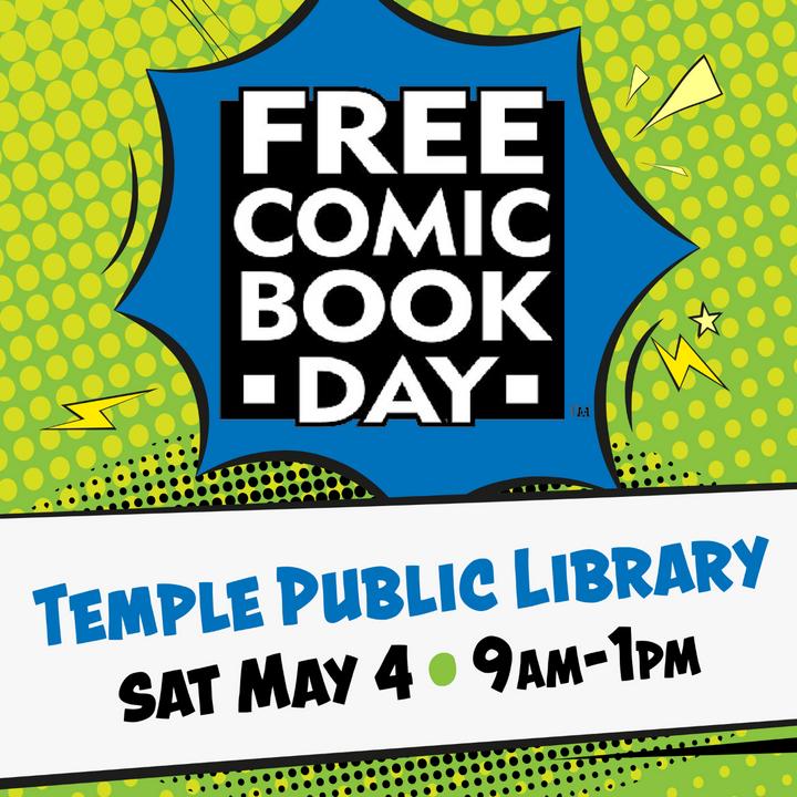 The Temple Public Library will host Free Comic Book Day on Saturday, May 4 from 9 a.m. to 1 p.m. Help your tweens and teens select free comic books during this family friendly event that will feature prize drawings, outdoor games, activities for all ages, and free comics courtesy of FX Game Exchange. Celebrate the power of comics and May the 4th be with you!