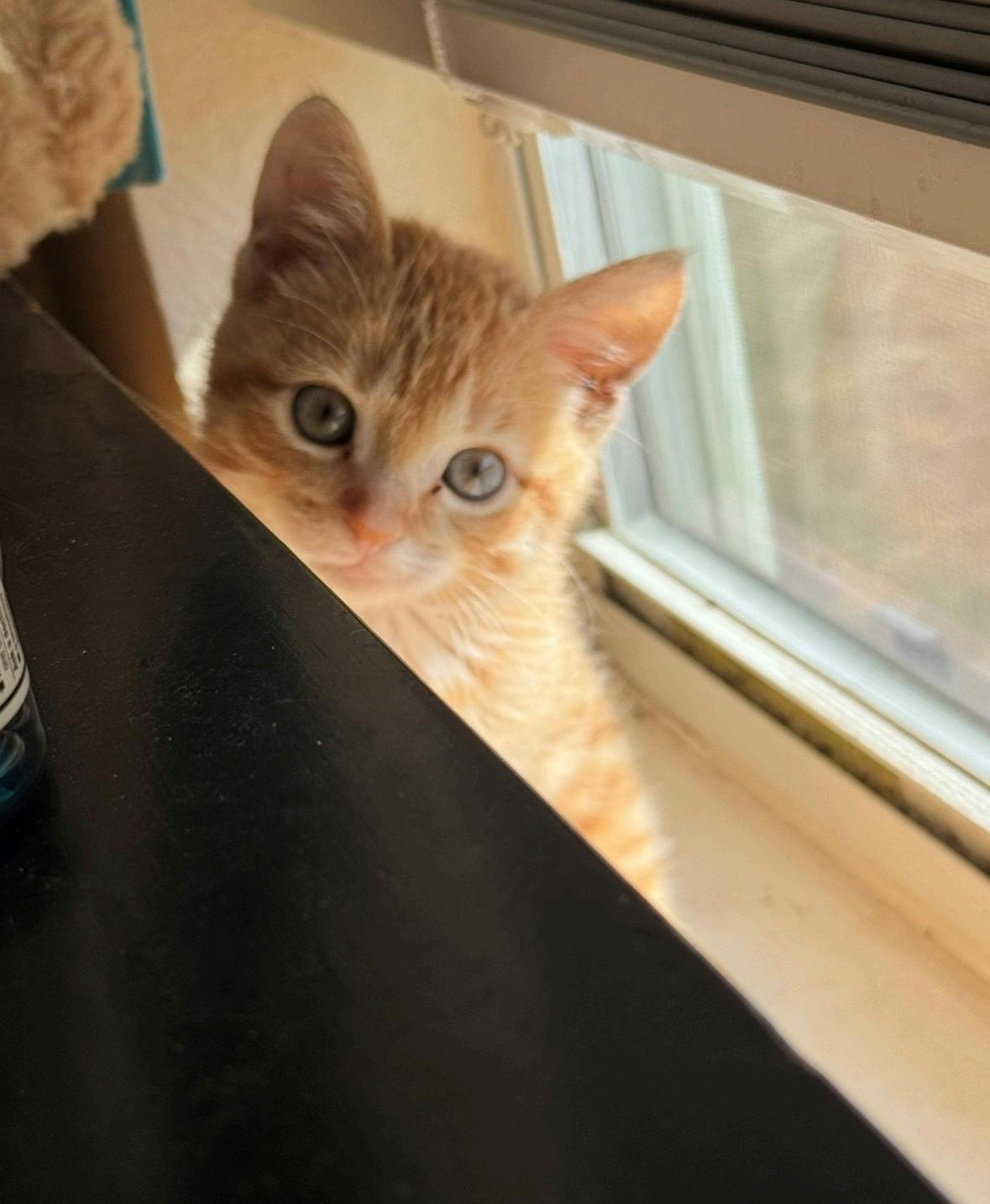 MeetGingy!LastyearinSeptember,ourFleetTechnicianDannyLewiswas workingonaridingmowerourParksDeptuses.Mr.Lewiskepthearingatiny meow,hethenlookedunderneaththemowerandfoundatinylittlekitten TheybroughthimtomesoIcouldcallAnimalServices.AssoonasIsawthat tinylittleorangefurball,Iautomaticallyknewhewouldbegoinghomewith me Hewasabout3weeksoldsoIhadtoformulafeedhimevery4hours I'm happytosayhehasdefinitelyliveduptohisorangegenetics.He'sextremely Orange,hasaboutonebraincellandnosenseofspatialawareness! He'sscrumptiosulysweetandfluffysohecangetawaywithjustabout anything.Happytosayheisnowan8monthold9lbballofenergywhois verywellloved!