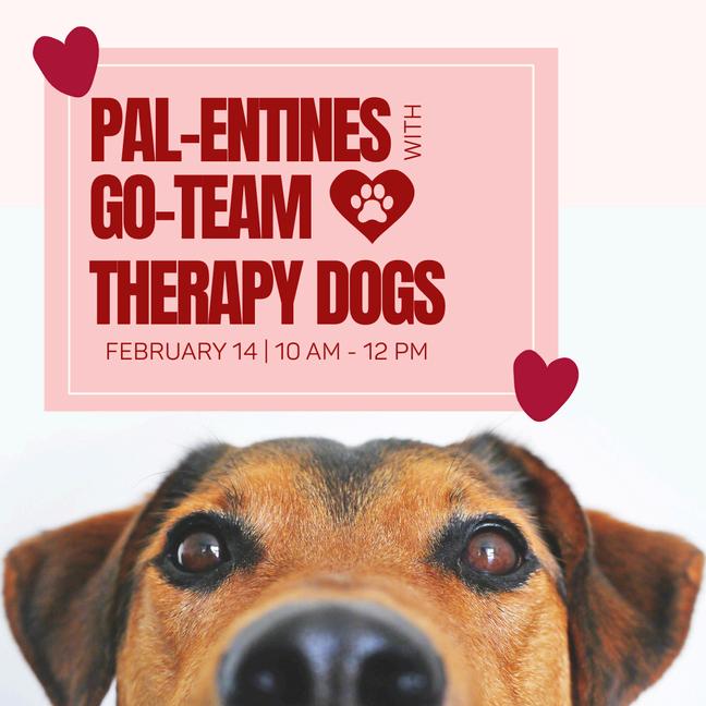 Spend part of your Valentine’s Day on Saturday, February 14, from 10–12 p.m. at the Temple Public Library’s Pal-entines Party with GO Therapy Dogs. This allages program offers a calm, welcoming opportunity to meet certified therapy dogs and learn about the important work they do in the community. Guests will also learn what sets therapy dogs apart, how they are trained, and how they provide comfort in various settings The event will be held on the 2nd Floor in the Program Room.