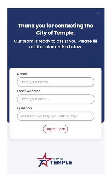 Connect App, by using the online chat at templetx.gov, or by calling 254-298-5000 during regular business hours (Monday–Friday, 8 a.m.–5 p.m.).