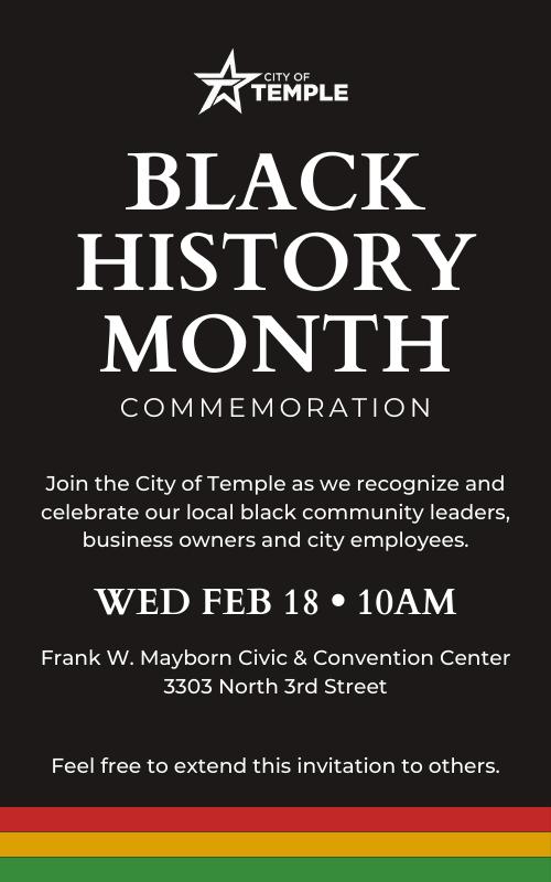 As we honor Black History Month, the City of Temple reaffirms its commitment to inclusion, equity, and the celebration of history — not just this month, but every day uplifting voices that continue to shape the heart, conscience, and future of our community.
