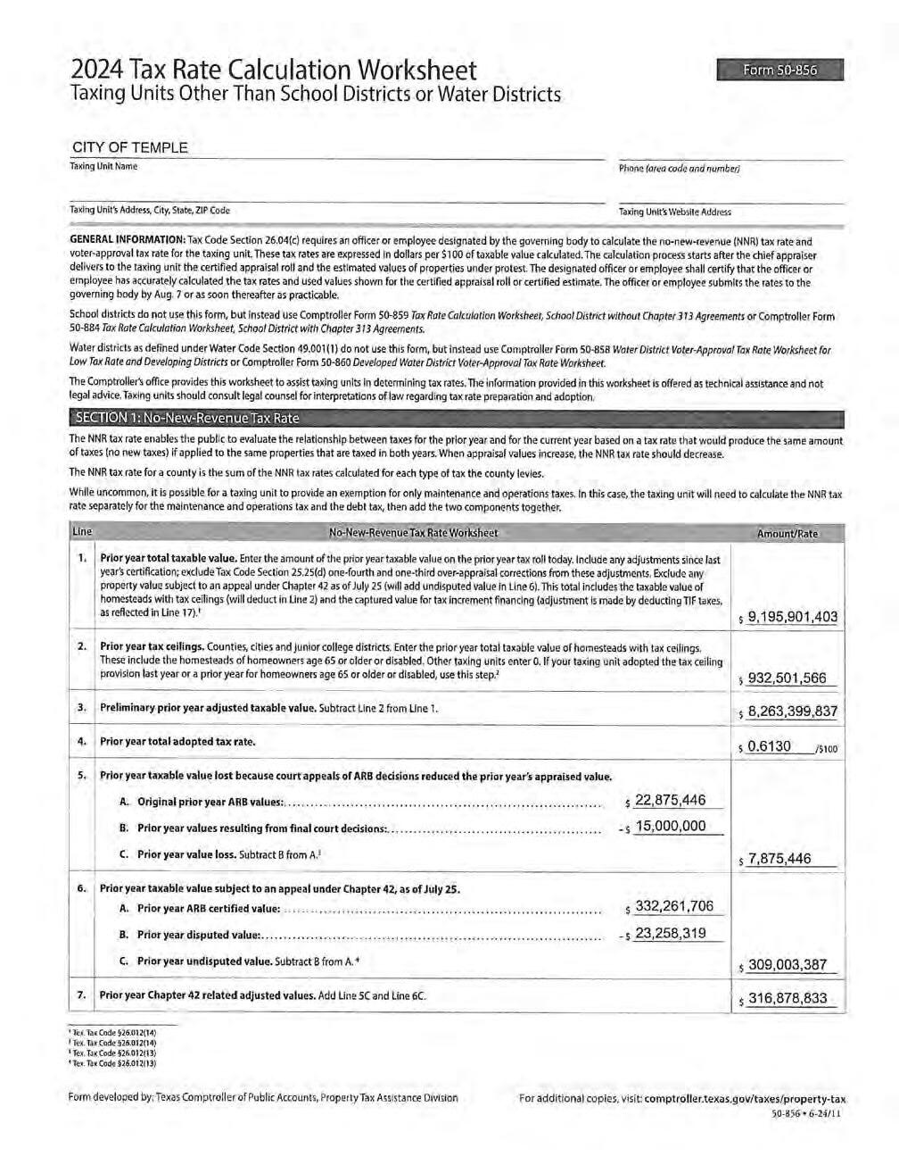 The total amount of taxes imposed by the City on taxable property, as determined by the Bell County Tax Appraisal District.