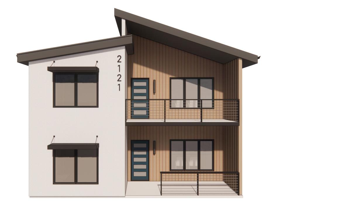 The Juniper is a unique, stacked duplex designed to feel flexible and modern. Each unit maintains open kitchen, dining, and living spaces along with spacious front and back patios. The second-floor unit incorporates a separate side entry to promote privacy. Each unit contains three bedrooms, two bathrooms, and a primary bedroom with walk-in closet with laundry room.