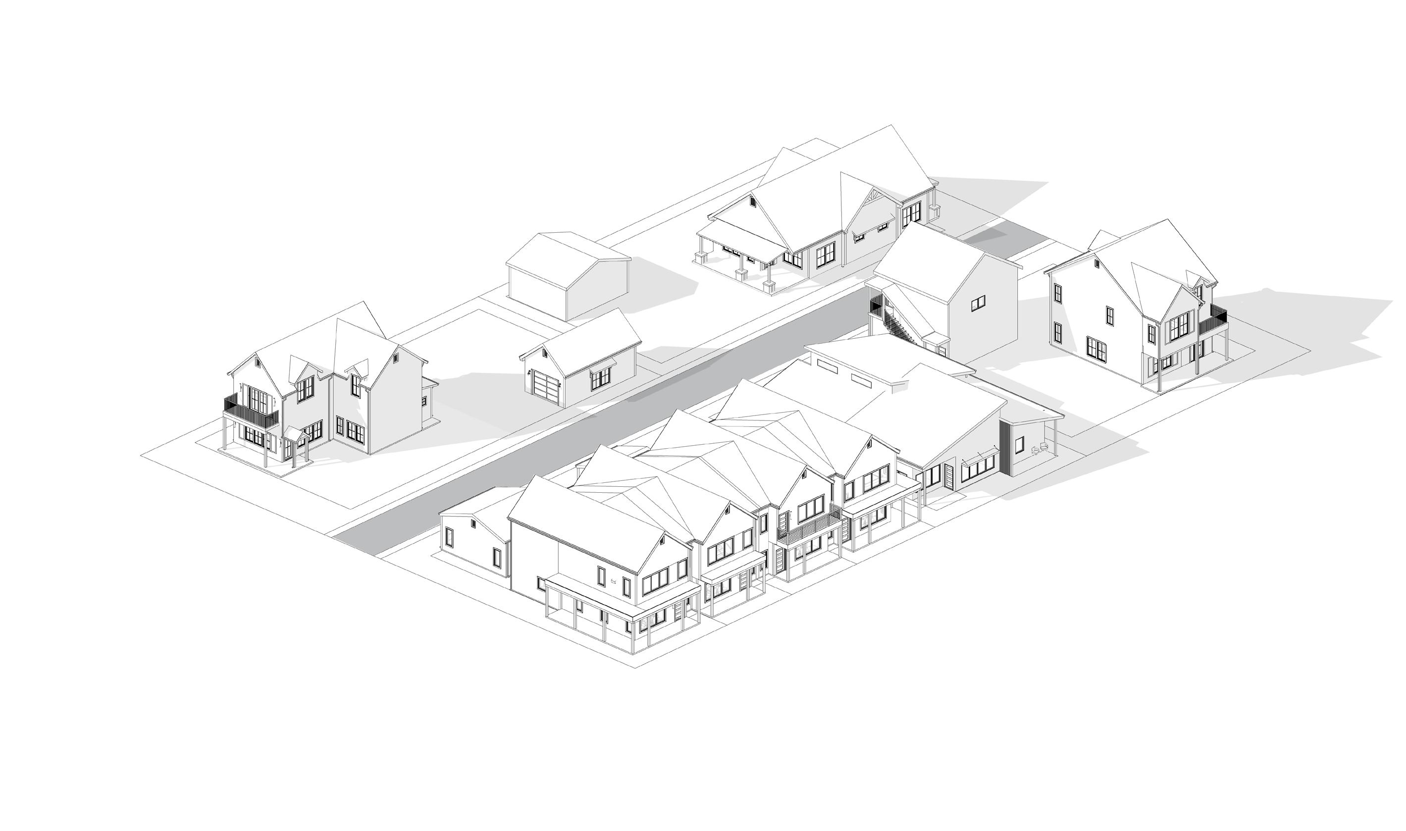 The Sugarberry Live/Work Multiplex consists of four total units, with commercial shell units on the ground floor with two bedroom units above.