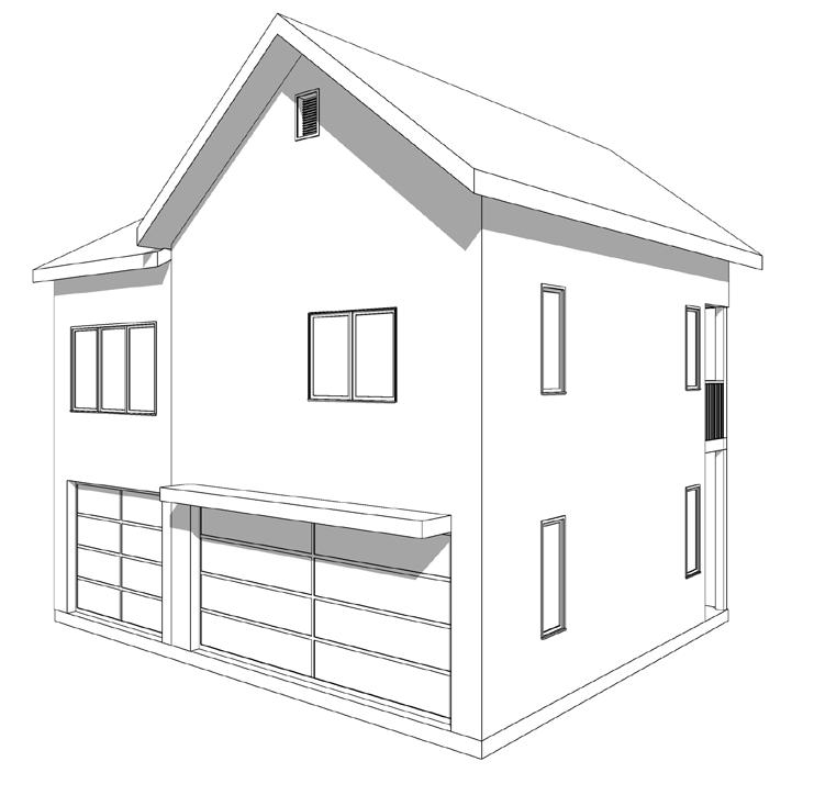 The Crossvine is a two-bedroom, side-byside duplex designed to feel like a singlefamily detached home. Each unit maintains separate facing entries, staggered patios, and individual exterior features to promote distinct living spaces. The open kitchen and living areas along with a connected semiprivate dining room enhances the sense of living in a standalone home.