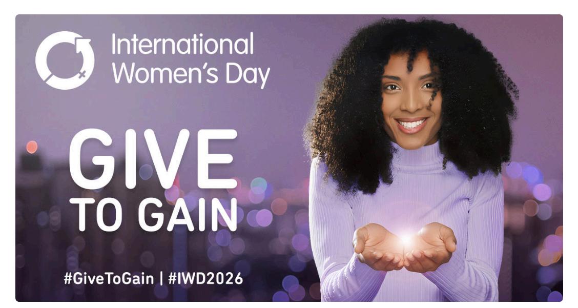 TheIWD2026GiveToGain Campaignencouragesa mindsetofgenerosityand collaboration.
