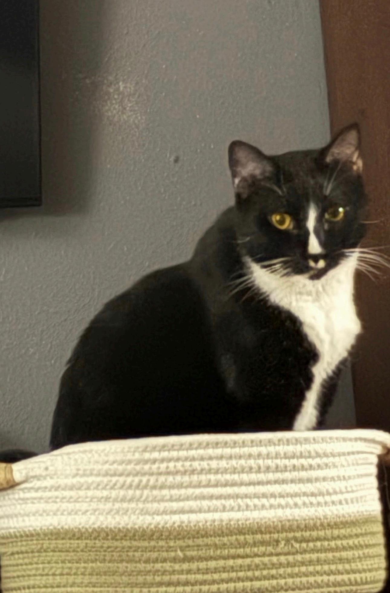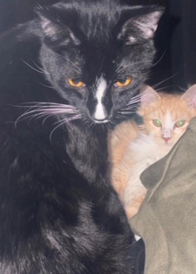 Zim,theblack-and-whitesweetheart,quiteliterallydrovehis wayintoourlives.Wefoundhimtuckedawayintheenginebay ofourcar,andfromthatmomentonhe’sbeenpartofthefamily. Zimisthedefinitionofacuddlebug gentle,affectionate,and alwaysreadytogivehissignaturelittlenose“boops.”Hissweet personalitymakeshimimpossiblenottolove.