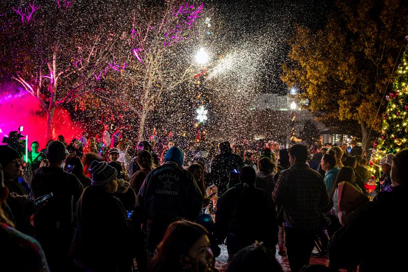Wrap up the evening with dessert at Sweet and Savory Seasons Bakery or Helados La Azteca, or a glass of wine at 3 Texans Winery while listening to live holiday tunes.