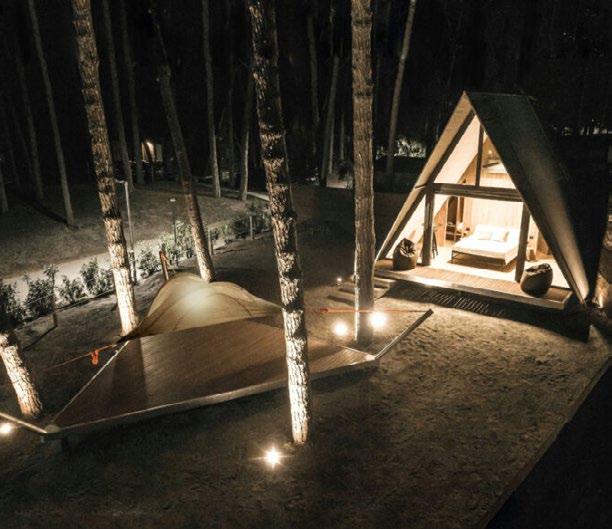 “Re-Tree-T”, soluzione green mostrata in forma di prototipo nel 2023 al villaggio turistico di Lido di Spina, formata da una tenda glamping e una terrazza che sale tra gli alberi e può ospitare anche una tenda.