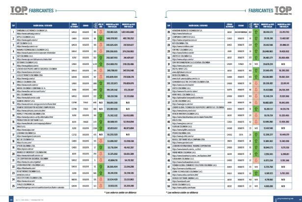 TOP Ranking of ICT Suppliers Colombia (50 manufacturers, 50 wholesalers, 900 integrators).