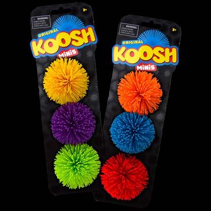 A KOOSH FACE-OFF NEW #23322 • 2–8 Players • Ages 6+ Includes Face-Off Target, (4) 2-inch Koosh Balls, Target Face, Instructions. Size: 15” x 15” x2.5” • Case Pack: 4 Available Spring 2023
