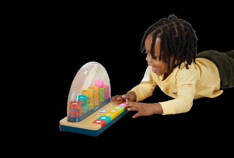 B GIMME-A-RING™ #6325 • Ages 6M+ Includes Phone, Parent Remote, Guide, 1 Button Cell, 3 AAA Batteries Size 6" x 7" x 2.5" • Case Pack 5 • Hear fun sounds and phrases when baby presses the buttons! C SEE-A-KEY™ #6324 • Ages 6M+ Includes 3 Keys on Keyring, Guide, 3 AAA Batteries Size 6" x 7" x 1.5" • Case Pack 5 • Colorful keys have different textures for a sensory experience! A POP-A-TUNE™ #6327 • Ages 12M+ Includes Piano, Guide, 3 AA Batteries Size 14" x 9" x 7.5" • Case Pack 2 • Press the keys to hear a sound and see the balls pop up and bounce! Little Wonders™ toys inspire classic play—reimagined! These toys encourage children to learn and grow while making discoveries about themselves and their world. All items feature natural wood for a modern, rich look and feel, alongside fun sounds and experiences children will love! B Light-up buttons match adorable animal keys to make sounds! PLAYSKOOL is a trademark of Hasbro and is used with permission. © 2022 Hasbro. All product art is not final and is subject to licensor approval. Change from classic piano to silly sounds with the push of a button! Record a special message! C A
