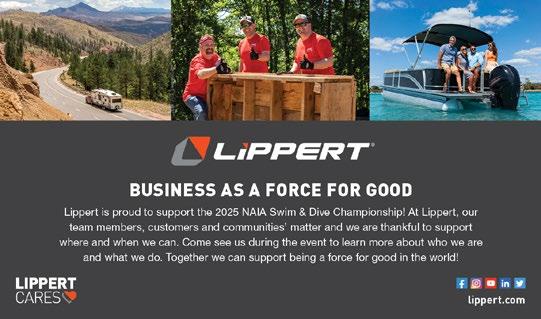 On behalf of the City of Elkhart, I would like to extend a warm welcome to all participants and guests attending the NAIA Swimming and Diving National Championship. This weekend promises to be a firstclass championship event in a first-class city.