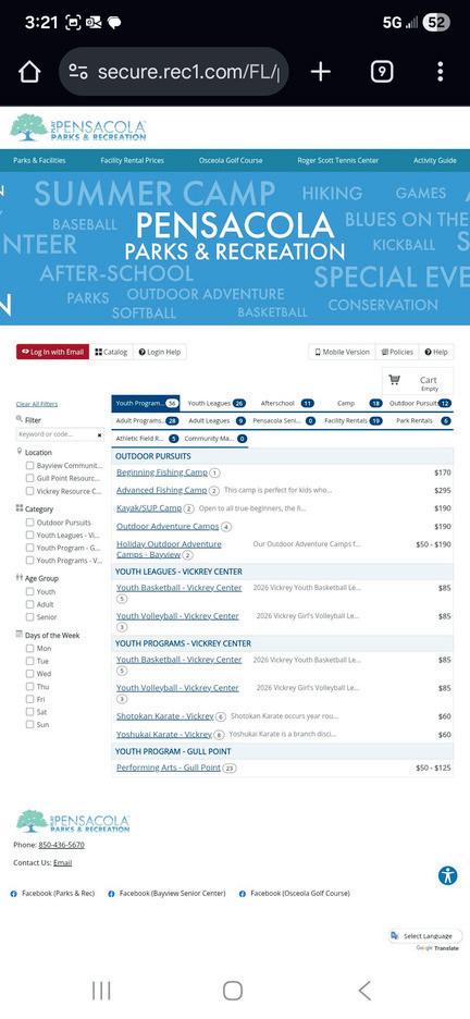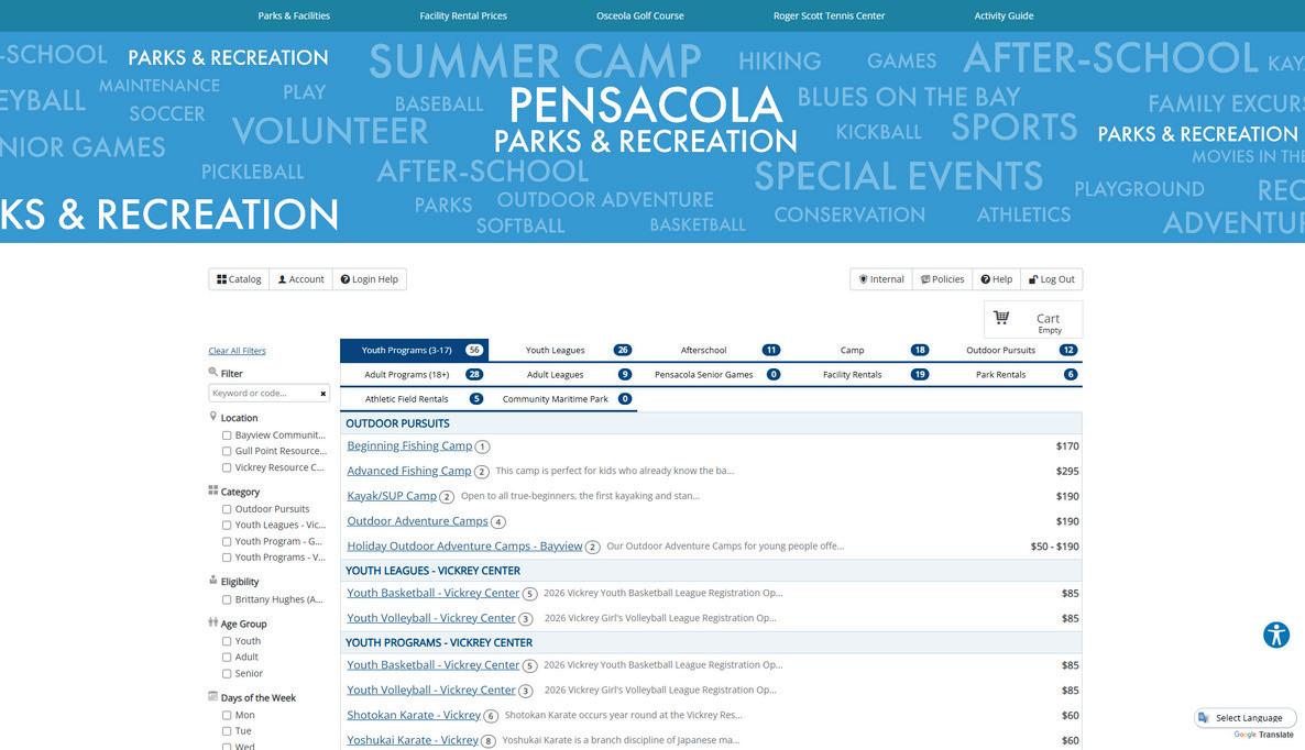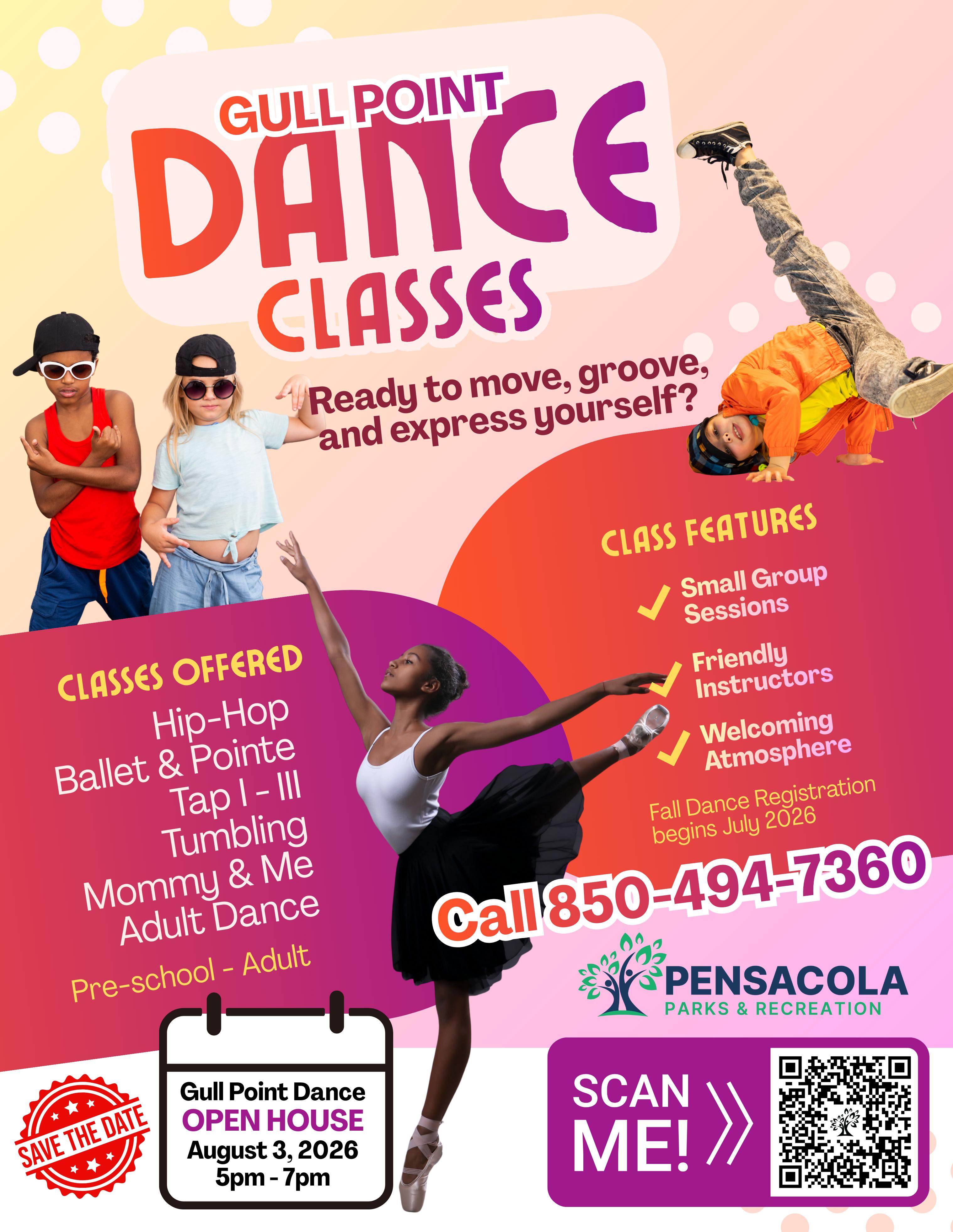 Many Parks & Recreation programs may be registered online. Scan the QR code below or visit https://secure.rec1.com/FL/ pensacola-fl/catalog to get started.