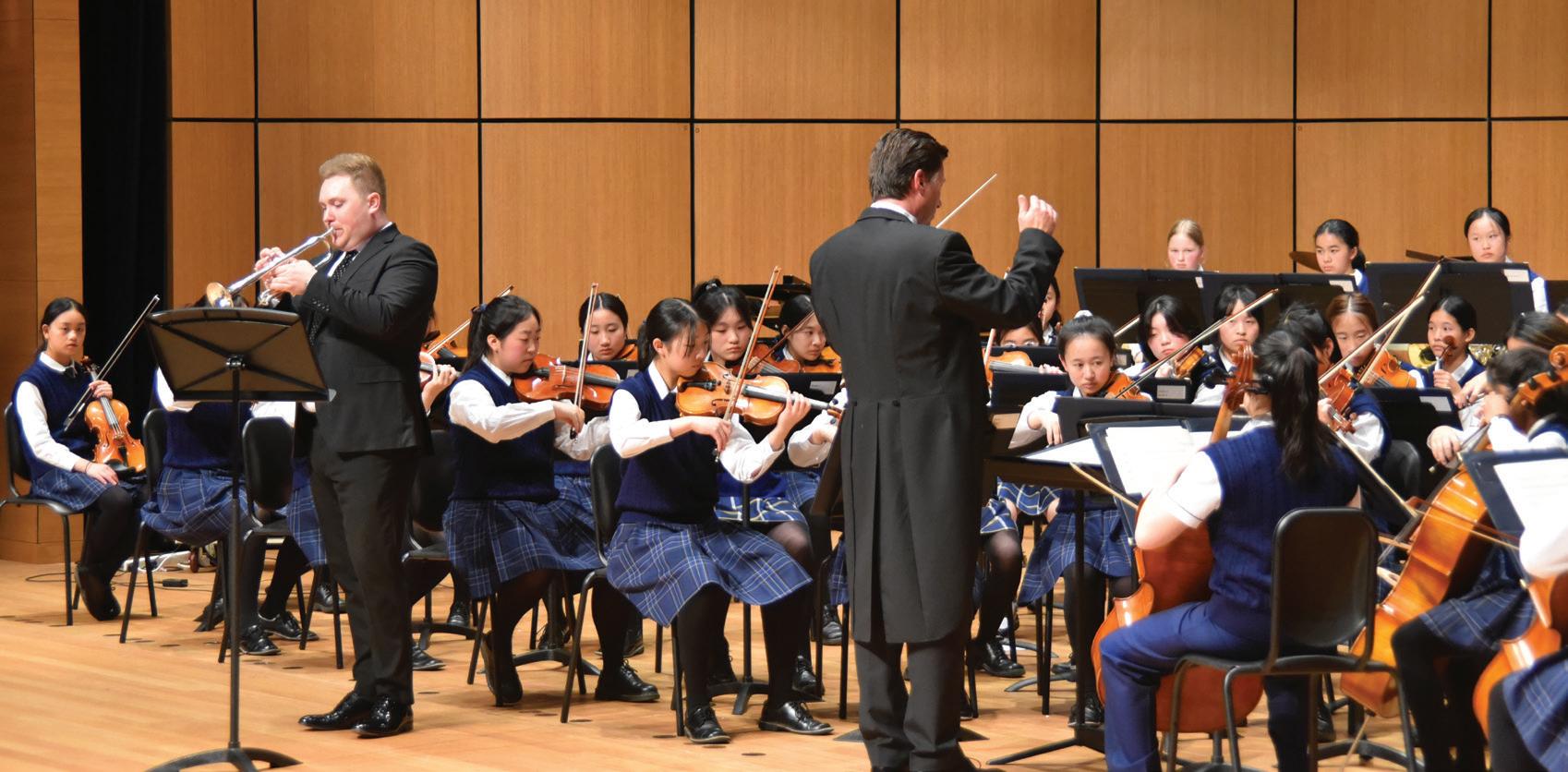 on the night and special mention should be made of their performance of Bach’s Concerto for Oboe and Violin in C minor. Both soloists, Clarice Lim (oboe) and Claudia Pak (violin), performed beautifully. However, undoubtedly, the highlight of the first half was the performance by James Fountain of Haydn’s Trumpet Concerto in E-flat major, accompanied by the Symphony Orchestra. We felt very privileged to have a world class performer on stage performing with our Symphony Orchestra here at PLC. His performance of this famous Concerto will be etched in our memories for a very long time. It was an absolute treat to witness such an amazing musician perform so effortlessly.