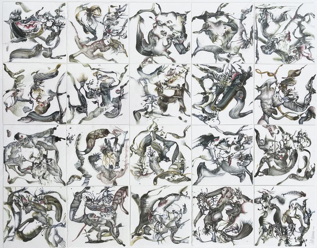 My work explores the subconscious and “the shadows of the self”, deeply influenced by personal experiences and various movements in art history. Dreamlike landscapes containing mysterious forms - some representational others more abstract - create a surrealist atmosphere which draws one in to see what’s been unearthed. Pulpit Rock provides a Boschian medieval backdrop for a corporeal darkness revealing fractures of light,staging meta-morphosised, hybrid, reborn versions of me. This emanates from my immigrant European lineage originating from medieval roots and interest in religion as fantasy. I navigate my shadows through drawing as a hybrid medium: watercolours, pencils, gouache, pigment sticks, watercolour markers and photomontage coalesce to form gold pan-like worlds where I sift my psyche and discover emotional and spiritual remnants of ‘self’. Using a variety of mixed media and processes, I intuitively explore the human condition and it’s secrets that surface through “a process of realisation”. My drawings are composite in nature, showcasing mixed media and photomontage at play between bound and unbound territories that exist between drawing and painting. Using elements of colour, simulated texture, mark making and animated form, I explore drawing and painting’s co-dependence on each other, honing interrelationships of their similarities and differences, hence highlighting the importance of what constitutes drawing’s relevance in contemporary art practice.