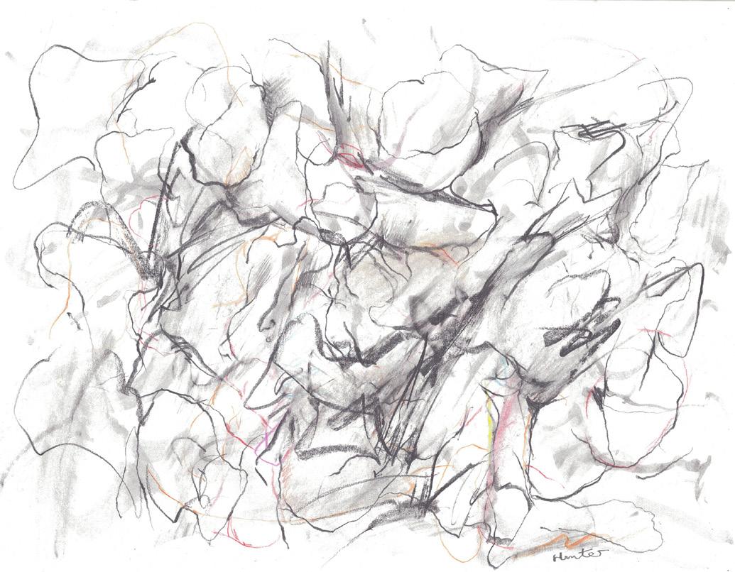 charcoal wash, graphite, coloured pencil and charcoal on paper