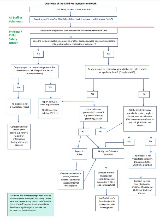 15. The College, through the Principal, will contact the Manager, Conduct Protocol Unit, NSW Presbyterian Church (NSWPC), to notify their office when an allegation of reportable