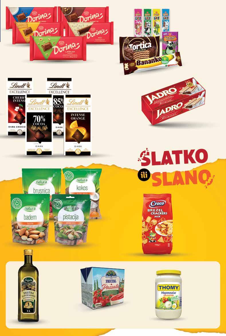 ORGULA Maslinovo ulje ekstra djevičansko 1 l THOMY Majoneza delikatesna DORINA Čokolada odabrane vrste 75 - 80 g KRAŠ Odabrani čokoladni deserti Životinjsko carstvo, lizli, bananko ili tortica 15 - 30 g JADRO Napolitanke original LINDT EXCELLENCE Čokolada odabrane vrste 100 g FRUCTAL Pasirana rajčica 500 ml CROCO Mješavina krekera i pereca 750 g Prilika vikenda!Super prilika! Prilika tjedna! 7 96 € 59.97 kn -31% 11.68 € / 88.00 kn Prilika vikenda!Super prilika! Prilika tjedna! 0 79 € 5.95 kn 1 kg = 9,88 - 10,53 € / 1 kg = 74,38 - 79,33 kn -25% 1.06 € / 7.99 kn Prilika vikenda!Super prilika! Prilika tjedna! 1 72 € 12.96 kn 1 kg = 17,20 € / 129,60 kn -31% 2.52 € / 18.99 kn Prilika vikenda!Super prilika! Prilika tjedna! 0 33 € 2.49 kn 1 kg = 11,00 - 22,00 € / 1 kg = 83,00 - 166,00 kn -32% 0.49 € / 3.69 kn Prilika vikenda!Super prilika! Prilika tjedna! 3 05 € 22.98 kn 1 kg = 4,07 € / 30,64 kn -34% 4.64 € / 34.96 kn -00% 0.00 € / 00.00 kn Prilika vikenda!Super prilika! Prilika tjedna! 3 70 € 27.88 kn 1 kg = 4,30 € / 32,42 kn 860 g -00% 0.00 € / 00.00 kn Prilika vikenda!Super prilika! Prilika tjedna! 4 05 € 30.51 kn 1 kg = 6,63 € / 49,93 kn 611 g NATURA Suho voće i orašasti plodovi odabrani proizvodi -30% Prilika vikenda!Super prilika! Prilika tjedna! 0 59 € 4.45 kn -36% 0.93 € / 7.01 kn 1 l = 1,18 € / 8,90 kn Fotografije proizvoda ne moraju u potpunosti odgovarati stvarnom izgledu