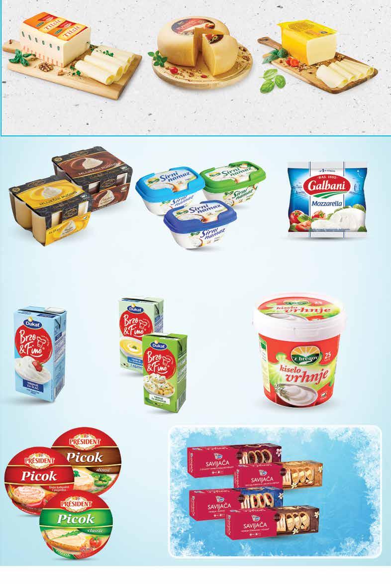 `Z BREGOV Kiselo vrhnje 25% m.m. DUKAT Vrhnje za kuhanje bez konzervansa 10% ili 20% m.m. FINO MI JE Puding sa šlagom čokolada ili vanilija DUKAT Vrhnje za šlag 33% m.m. PRESIDENT Sir Tilzit polutvrdi punomasni 45% m.m. `Z BREGOV Sirni namaz 70% ili 40% m.m. razni okusi GALBANI Mozzarella PRESIDENT PICOK Topljeni sir razne vrste Prilika vikenda!Super prilika! Prilika tjedna! 9 29 € 70.00 kn -49% 18.57 € / 139.92 kn Prilika tjedna! 1 29 € 9.72 kn 1 kg = 2,58 € / 19,44 kn 4x 125 g Prilika tjedna! Prilika vikenda!Super prilika! 1 59 € 11.98 kn 1 kg = 11,36 € / 85,57 kn 140 g 3 18 € 23.96 kn 1 kg = 6,36 € / 47,92 kn 500 g 1 13 € 8.51 kn 1 kg = 5,65 € / 42,55 kn 200 g 3 35 € 25.24 kn 1 kg = 3,72 € / 28,04 kn 900 g 1 33 € 10.02 kn 1 kg = 6,65 € / 50,10 kn 200 g 1 72 € 12.96 kn 1 kg = 13,76 € / 103,68 kn 125 g -00% 0.00 € / 00.00 kn Prilika vikenda!Super prilika! Prilika tjedna! 9 95 € 74.97 kn 1 kg POTRAŽI NA USLUŽNOM PULTU POTRAŽI NA USLUŽNOM PULTU POTRAŽI NA USLUŽNOM PULTU smrznuto 4 x 125 g STANIĆ Sir Planinski 1 kg LEDO Savijača smrznuto razne vrste 500 g -20% -00% 0.00 € / 00.00 kn Prilika vikenda!Super prilika! Prilika tjedna! 4 90 € 36.92 kn 1 kg Sir Gouda polutvrdi 45% m.m.