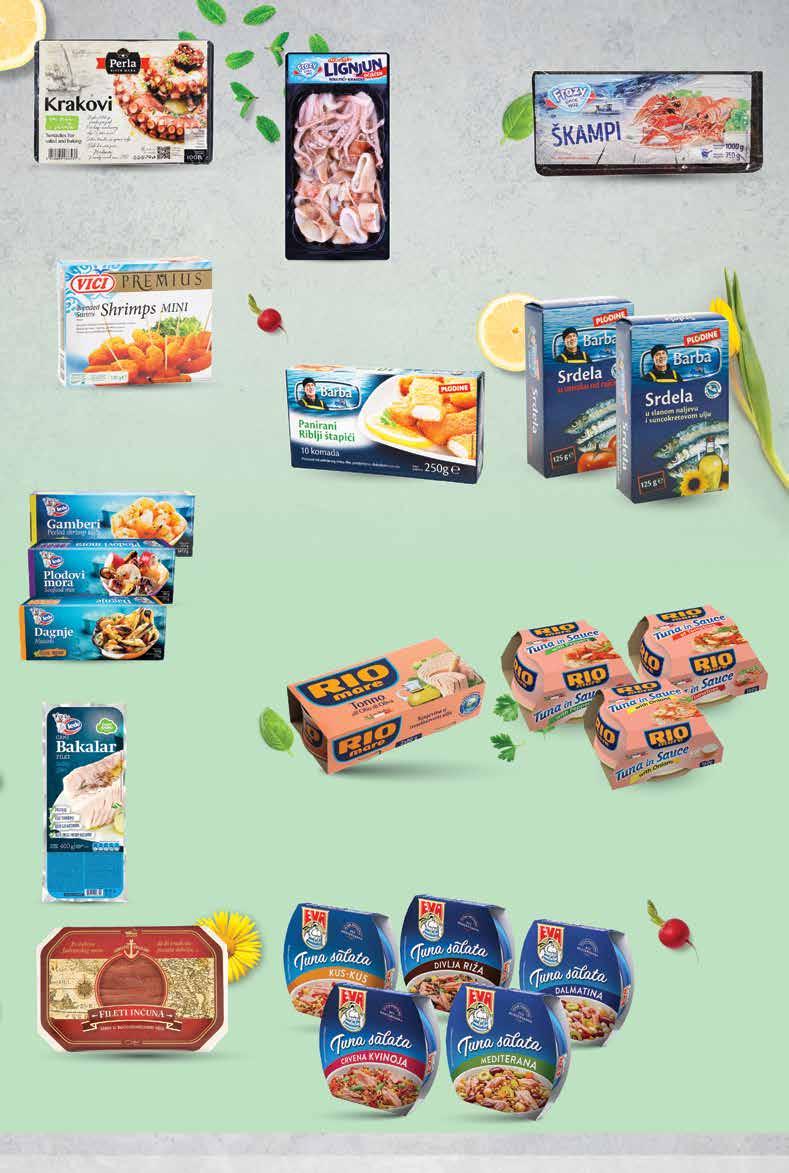 ARBA SOL Inćun filet FROZY Škampi smrznuti PERLA Krakovi za peku i salatu smrznuti EVA Salata tuna razne vrste 160 g RIO MARE Komadi tune u umaku razne vrste 160 g BARBA Srdela u umaku od rajčice ili u suncokretovom ulju *ocijeđene mase 90 g VICI Panirani surimi račići smrznuto 170 g BARBA Panirani riblji štapići smrznuti 250 g LEDO Crni bakalar filet smrznuto 3 69 € 27.80 kn 1 kg = 9,23 € / 69,50 kn 400 g Prilika vikenda!Super prilika! Prilika tjedna! 1 99 € 14.99 kn 1 kg = 12,44 € / 93,69 kn -42% 3.45 € / 25.99 kn 6 10 € 45.96 kn 1 kg Prilika tjedna!-00% 0.00 € / 00.00 kn Prilika vikenda!Super prilika! 7 99 € 60.20 kn 1 kg = 19,98 € / 150,50 kn 400 g Prilika vikenda!Super prilika! Prilika tjedna! 1 69 € 12.73 kn 1 kg = 10,56 € / 79,56 kn -42% 2.92 € / 22.00 kn Prilika vikenda!Super prilika! Prilika tjedna! 2 19 € 16.50 kn 1 kg = 21,06 € / 158,65 kn -50% 4.38 € / 33.00 kn Prilika tjedna!-13% 0.80 € / 6.03 kn Prilika vikenda!Super prilika! 0 69 € 5.20 kn 1 kg = 7,67 € / 57,78 kn 125 g 3 29 € 24.79 kn 1 kg = 73,11 € / 550,89 kn 75 g LEDO Gamberi, Dagnje ili Plodovi mora smrznuto odabrani proizvodi 250 - 300 g -20% smrznuto smrznuto smrznuto smrznuto smrznuto smrznuto smrznuto FROZY Lignjun Atlantski kolutići i krakovi smrznuto 1125 € 84.76 kn 1 kg Prilika vikenda!Super prilika! Prilika tjedna! 2 10 € 15.82 kn 1 kg = 12,35 € / 93,06 kn -15% 2.49 € / 18.76 kn Prilika vikenda!Super prilika! Prilika tjedna! 0 99 € 7.46 kn 1 kg = 3,96 € / 29,84 kn -17% 1.09 € / 8.21 kn RIO MARE Tuna u maslinovom ulju *ocijeđena masa 104 g 2x 80 g 2 x 80 g