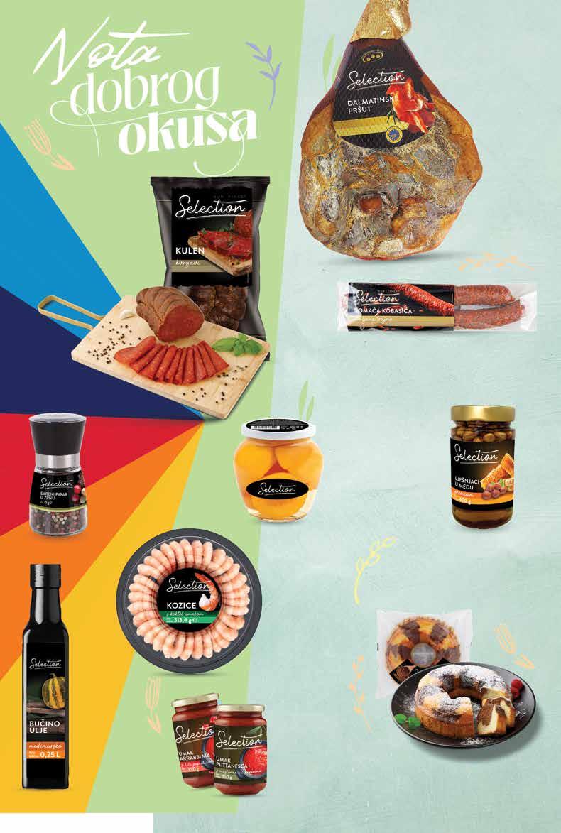 SELECTION Bučino ulje djevičansko 5 39 € 40.61 kn 1 l = 21,56 € / 162,44 kn 250 ml SELECTION Šareni papar u zrnu 3 32 € 25.01 kn 1 kg = 44,27 € / 333,47 kn 75 g SELECTION Kozice s cocktail umakom smrznuto smrznuto 6 69 € 50.41 kn 1 kg = 21,35 € / 160,85 kn 313,40 g SELECTION Domaća dimljena kobasica trajni proizvod 8 99 € 67.74 kn 1 kg SELECTION Mramorni kolač 2 99 € 22.53 kn 1 kg = 7,48 € / 56,33 kn 400 g SELECTION Umak Arrabbiata ili Puttanesca 1 59 € 11.98 kn 1 kg = 4,54 € / 34,23 kn 350 g SELECTION Med premium s lješnjacima 4 99 € 37.60 kn 1 kg = 12,48 € / 94,00 kn 400 g SELECTION Kompot marelica *ocijeđena masa 300 g 1 99 € 14.99 kn 1 kg = 6,63 € / 49,97 kn 570 g SELECTION Dalmatinski pršut s kostima trajni proizvod 1327 € 99.98 kn 1 kg SELECTION Kulen kvrgavi trajni proizvod 1459 € 109.93 kn 1 kg