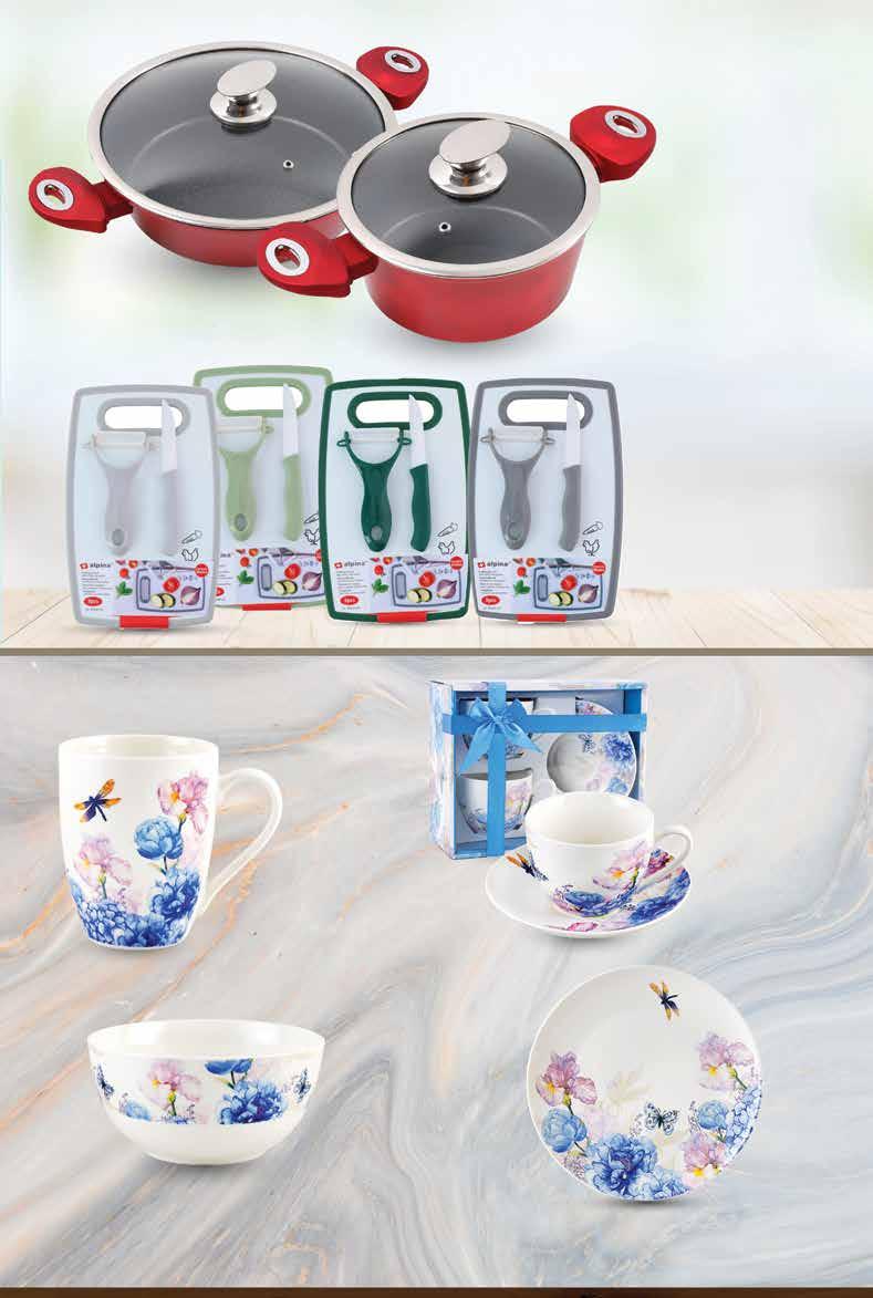 ALPINA Daska za rezanje • PVC + kuhinjski nož + nož za guljenje Posuda za kuhanje s poklopcem • dimenzija 20x9 cm • materijal: kovani aluminij, staklo • ručke od bakelita 2 69 € 20.27 kn 1 29 € 9.72 kn 2 29 € 17.25 kn 3 59 € 27.05 kn 5 99 € 45.13 kn 1569 € 118.22 kn Ø 13 cm Ø 25 cm A A B Šalica • cvjetni uzorak A B C Set šalica i tanjura • cvjetni uzorak A B C Tanjur • cvjetni uzorak A B Zdjelica • cvjetni uzorak A B C • dimenzije 28x7,5 cm 19.89 € 149.86 kn • dimenzije 24x11,5 cm 19.89 € 149.86 kn 230 ml 350 ml 4 - dijelni set porculan porculan porculan porculan