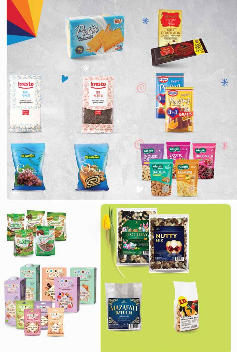HOD Pistacija pržena i slana KRESTO Mak plavi mljeveni 200 g ŠAFRAM Orah nadjev za kolače 200 g ŠAFRAM Suho grožđe 200 g KRESTO Kokos brašno 200 g DR.OETKER Puding vanilija ili čokolada 152 - 196 g KANDIT DESSERT CHEF Čokolada za kuhanje bijela ili tamna 200 - 300 g ALEGRO Suho voće i orašasti plodovi odabrane vrste 150 - 200 g -25% BOOM BOX odabrani proizvodi -25% NATUREL Muesli Crunchy ili Granola odabrane vrste 350 g Prilika vikenda!Super prilika! Prilika tjedna! 1 99 € 14.99 kn 1 kg = 5,69 € / 42,83 kn -31% 2.92 € / 22.00 kn Prilika vikenda!Super prilika! Prilika tjedna! 1 29 € 9.72 kn 1 kg = 6,45 € / 48,60 kn -33% 1.94 € / 14.62 kn Prilika vikenda!Super prilika! Prilika tjedna! 1 86 € 14.01 kn 1 kg = 6,20 - 9,30 € / 1 kg = 46,70 - 70,05 kn -22% 2.39 € / 18.01 kn Prilika vikenda!Super prilika! Prilika tjedna! 1 79 € 13.49 kn 1 kg = 12,18 - 16,27 € / 1 kg = 91,77 - 122,64 kn -10% 1.99 € / 14.99 kn Prilika tjedna!-00% 5.31 € / 40.01 kn Prilika vikenda!Super prilika! 4 99 € 37.60 kn 1 kg = 16,63 € / 125,33 kn 300 g Prilika vikenda!Super prilika! Prilika tjedna! 0 79 € 5.95 kn 1 kg = 3,95 € / 29,75 kn -31% 1.15 € / 8.66 kn Prilika vikenda!Super prilika! Prilika tjedna! 2 49 € 18.76 kn 1 kg = 12,45 € / 93,80 kn -30% 3.57 € / 26.90 kn Prilika vikenda!Super prilika! Prilika tjedna! 0 79 € 5.95 kn 1 kg = 3,95 € / 29,75 kn -35% 1.22 € / 9.19 kn Prilika vikenda!Super prilika! Prilika tjedna! 3 69 € 27.80 kn 1 kg = 9,23 € / 69,50 kn -46% 6.89 € / 51.91 kn MARJAN VOĆE Nutty mix ili Holiday mix 400 g MARJAN VOĆE Datulja mazafati svježa 500 g Prilika vikenda!Super prilika! Prilika tjedna! 1 59 € 11.98 kn 1 kg = 3,18 € / 23,96 kn -36% 2.52 € / 18.99 kn B&B Keks petit Prilika tjedna!-40% 1.33 € / 10.02 kn Prilika vikenda!Super prilika! 0 79 € 5.95 kn 1 kg = 1,98 € / 14,88 kn 400 g