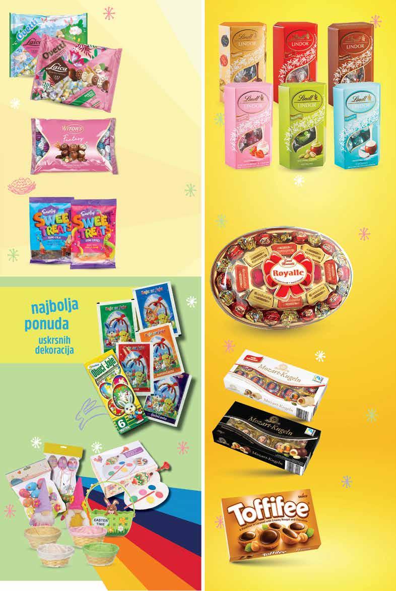 TOFFIFEE Bombonijera s lješnjacima i karamelom 1 86 € 14.01 kn 1 kg = 14,88 € / 112,08 kn 125 g LINDT LINDOR Čokoladne praline razne vrste -39% 6.63 € / 49.95 kn Prilika vikenda!Super prilika! Prilika tjedna! 3 99 € 30.06 kn 1 kg = 19,95 € / 150,30 kn 200 g LAICA Praline Royalle kutija 260 g Prilika vikenda!Super prilika! Prilika tjedna! 4 99 € 37.60 kn 1 kg = 19,19 € / 144,62 kn -24% 6.59 € / 49.65 kn Prilika vikenda!Super prilika! Prilika tjedna! 3 99 € 30.06 kn 1 kg = 8,87 € / 66,80 kn -24% 5.29 € / 39.86 kn LAICA Čokoladna jaja punjena odabrane vrste 1 kg Prilika vikenda!Super prilika! Prilika tjedna! 6 99 € 52.67 kn -12% 7.96 € / 59.97 kn 1 kg MOZART Praline kugle classic ili bijele 200 g Prilika vikenda!Super prilika! Prilika tjedna! 2 99 € 22.53 kn 1 kg = 14,95 € / 112,65 kn -16% 3.58 € / 26.97 kn 0 15 € 1.13 kn 50% Štedisniženo više! Plati manje!Super svježa prilika!Već od Boje i naljepnice Prilika tjedna!-00% 0.00 € / 00.00 kn Prilika vikenda!Super prilika! 1 18 € 8.89 kn 1 kg = 5,90 € / 44,45 kn 200 g SWEET TREATS Bomboni gumeni cola ili kiseli crvi odabrani proizvodi
