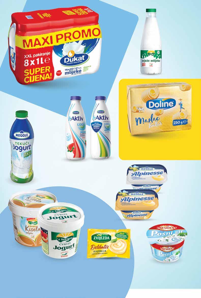 DUKAT B.AKTIV Jogurt LGG natur ili jagoda MEGGLE Tekući jogurt 2,8% m.m. MEGGLE Namaz Alpinesse classic ili slani ZVIJEZDA Majoneza delikates od svježih jaja bez konzervansa 85 g `Z BREGOV Čvrsti jogurt ili čvrsto kiselo mlijeko 3,2% m.m. `Z BREGOV Svježe mlijeko 3,2% m.m. PRESIDENT Svježi posni sir posni 2 59 € 19.51 kn 1 kg = 10,36 € / 78,04 kn 250 g Prilika vikenda!Super prilika! Prilika tjedna! 0 69 € 5.20 kn 1 kg = 7,67 € / 57,78 kn -25% 0.93 € / 7.01 kn -00% 0.00 € / 00.00 kn Prilika vikenda! Super prilika! Prilika tjedna! 7 40 € 55.76 kn 1 l = 0,93 € / 6,97 kn 8x 1 l Prilika tjedna!-00% 0.00 € / 00.00 kn Prilika vikenda!Super prilika! 1 19 € 8.97 kn 1 l Prilika tjedna!-00% 0.00 € / 00.00 kn Prilika vikenda!Super prilika! 1 72 € 12.96 kn 1 kg Prilika tjedna!-00% 0.00 € / 00.00 kn Prilika vikenda!Super prilika! 2 05 € 15.45 kn 1 kg 1 86 € 14.01 kn 1 kg = 2,07 € / 15,57 kn 900 g 1 26 € 9.49 kn 1 kg = 6,30 € / 47,45 kn 200 g 1 79 € 13.49 kn 1 kg = 7,16 € / 53,96 kn Štedi više! Plati manje! 50% sniženoSuper svježa prilika!Već od HIT cijena! 8 x 1 l 1 l = 0,93 € 1 l = 6,97 kn DOLINE Maslac 82% m.m. 250 g DUKAT Trajno mlijeko bogato kalcijem 2,8% m.m. obiteljsko pakiranje Fotografije proizvoda ne moraju u potpunosti odgovarati stvarnom izgledu proizvoda. Kupnja je moguća samo u količinama primjerenim za kućanstvo. Sve navedene cijene izražene su u eurima i kunama s PDV-om. Fiksni tečaj konverzije €/kn: 7,53450. Ne odgovaramo za tiskarske pogreške. 14