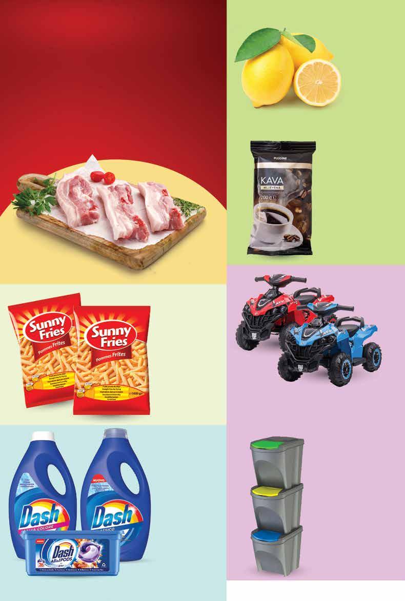A B C PLODINE Kava mljevena classic 200 g Prilika vikenda!Super prilika! Prilika tjedna! 1 49 € 11.23 kn 1 kg = 7,45 € / 56,15 kn -13% 1.72 € / 12.96 kn Prilika tjedna!-50% 12.74 € / 95.99 kn Prilika vikenda!Super prilika! 6 37 € 47.99 kn 1 l = 2,90 € / 21,81 kn 1 kom = 0,25 € / 1,85 kn 2,2 l ili 26 komada AVIKO Pomfrit Sunny Fries smrznuto 1 99 € 14.99 kn 1 kg smrznuto 4499 € 338.98 kn 6 × 7.50 € 6 × 56.50 kn A B DASH Deterdžent za rublje 1460 € 110.00 kn Kanta za odvajanje otpada • plastična 3x25 l Quad na akumulator • crveni ili plavi • akumulator 6 V, 7Ah • motor 6 V 15 W 72×43×50 cm 0 59 € 4.45 kn 1 kg = 1,18 € / 8,90 kn 500 g 3 49 € 26.30 kn 1 kg Limun Natalia Svinjsko carsko meso svježe na pultu Super uštede! ne propusti Prilika za početak tjedna Od ponedjeljka do utorka 27.03.-28.03. Fotografije proizvoda ne moraju u potpunosti odgovarati stvarnom izgledu proizvoda. Kupnja je moguća samo u količinama primjerenim za kućanstvo. Sve navedene cijene izražene su u eurima i kunama s PDV-om. Fiksni tečaj konverzije €/kn: 7,53450. Ne odgovaramo za tiskarske pogreške. 32