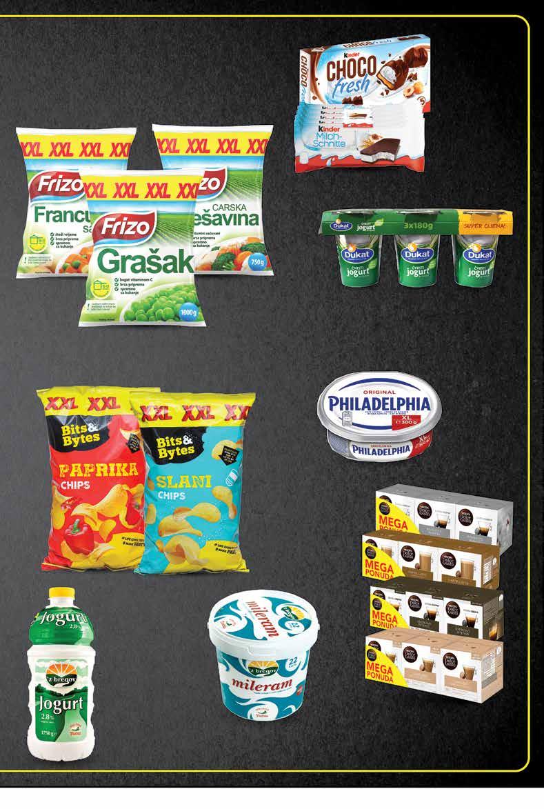 PHILADELPHIA Sirni namaz natur XXL 750 - 1000 g 300 g `Z BREGOV Mileram 22% m.m. KINDER Milchschnitte 5x 28 g ili Choco Fresh 5x 21 g `Z BREGOV Tekući jogurt 2,8% m.m. 1,75 l Prilika vikenda!Super prilika! Prilika tjedna! 2 79 € 21.02 kn 1 l = 1,59 € / 12,01 kn -24% 3.71 € / 27.95 kn 3 32 € 25.01 kn 1 kg = 3,69 € / 27,79 kn 900 g Prilika tjedna!-00% 0.00 € / 00.00 kn Prilika vikenda!Super prilika! 1 99 € 14.99 kn 1 kg = 14,21 - 18,95 € / 1 kg = 107,07 - 142,76 kn 3 05 € 22.98 kn 1 kg = 10,17 € / 76,60 kn 300 g 3 x 180 g DUKAT Čvrsti jogurt Prilika tjedna!-00% 0.00 € / 00.00 kn Prilika vikenda!Super prilika! 1 25 € 9.42 kn 1 kg = 2,31 € / 17,44 kn 3x 180 g FRIZO Grašak, Povrće za francusku ili Carska mješavina smrznuto 2 10 € 15.82 kn 1 kg = 2,10 - 2,80 € / 1 kg = 15,82 - 21,09 kn 750 - 1000 g smrznuto hlađeno NESCAFE DOLCE GUSTO Kapsule odabrane vrste 3 pack 302,4 - 480 g Prilika vikenda!Super prilika! Prilika tjedna! 1299 € 97.87 kn 1 kg = 27,06 - 40,54 € / 1 kg = 203,89 - 305,46 kn -18% 15.99 € / 120.48 kn BITS&BYTES Čips slani ili paprika XXL 280 g -00% 0.00 € / 00.00 kn Prilika vikenda!Super prilika! Prilika tjedna! 1 38 € 10.40 kn 1 kg = 4,93 € / 37,14 kn 280 g JOŠ VEĆA UŠTEDA