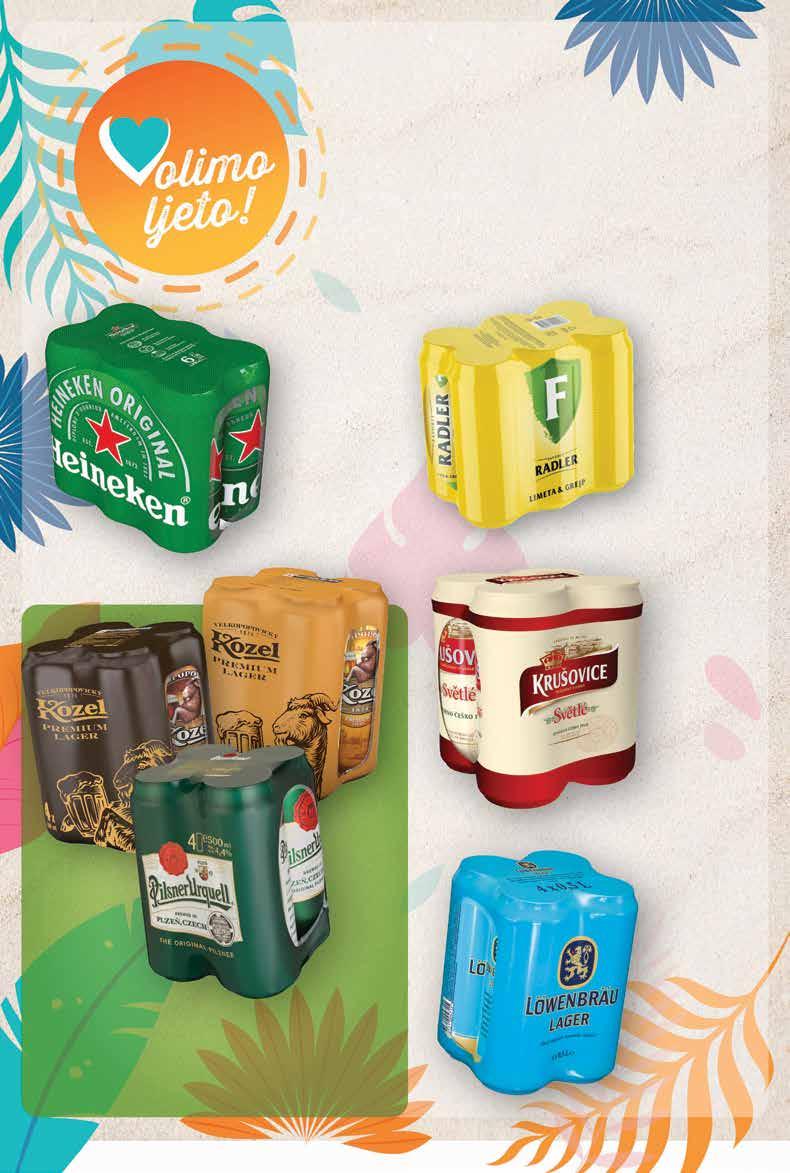KRUŠOVICE SVETLE Češko pivo udio alkohola 4,6% HEINEKEN Svijetlo pivo udio alkohola 5% LOWENBRAU Svijetlo pivo udio alkohola 4% KOZEL ILI PILSNER URQUELL Pivo Premium lager, dark ili Pilsner udio alkohola 3,8% - 4,6% 4x 0,5 l FAVORIT Radler Limeta - grejp udio alkohola 2% 3 29 € 24.79 kn 1 l = 1,65 € / 12,40 kn 4x 0,5 l 4 89 € 36.84 kn 1 l = 2,45 € / 18,42 kn 4x 0,5 l 6 50 € 48.97 kn 1 l = 2,17 € / 16,32 kn 6x 0,5 l -00% 0.00 € / 00.00 kn PrilikaPrilikavikenda! tjedna! Super prilika! 7 79 € 58.69 kn 1 l = 2,60 € / 19,56 kn 6 x 0,5 l HIT cijena! 4 68 € 35.26 kn Štedi više! Plati manje! 50% sniženoSuper svježa prilika!Već od 4 x 0,5 l 4 x 0,5 l 4 x 0,5 l 6 x 0,5 l 6 x 0,5 l Jesi li za grickalice uz pivo? Fotografije proizvoda ne moraju u potpunosti odgovarati stvarnom izgledu proizvoda. Kupnja je moguća samo u količinama primjerenim za kućanstvo. Sve navedene cijene izražene su u eurima i kunama s PDV-om. Fiksni tečaj konverzije €/kn: 7,53450. Ne odgovaramo za tiskarske pogreške. 2