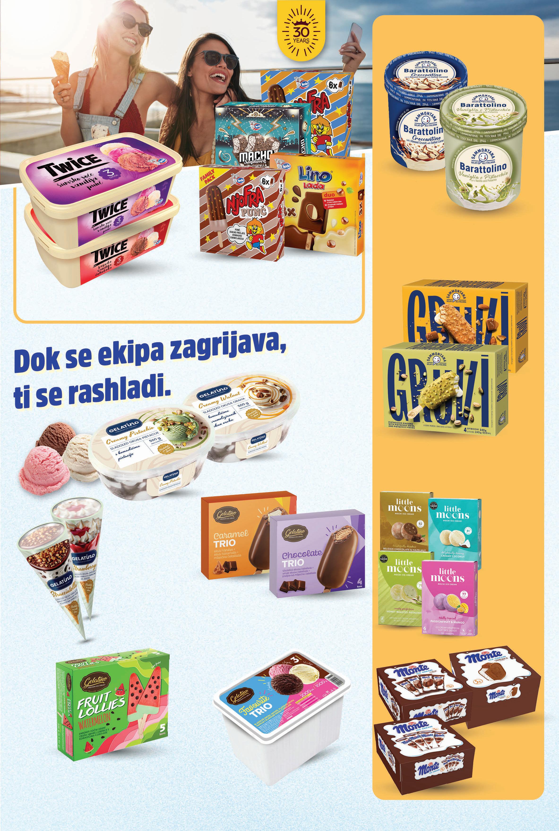 GELATINO Sladoled kornet čokolada-vanilija ili jagoda-vanilija MPC 09.07.2025. = 3,69 € 1 l = 3,02 €