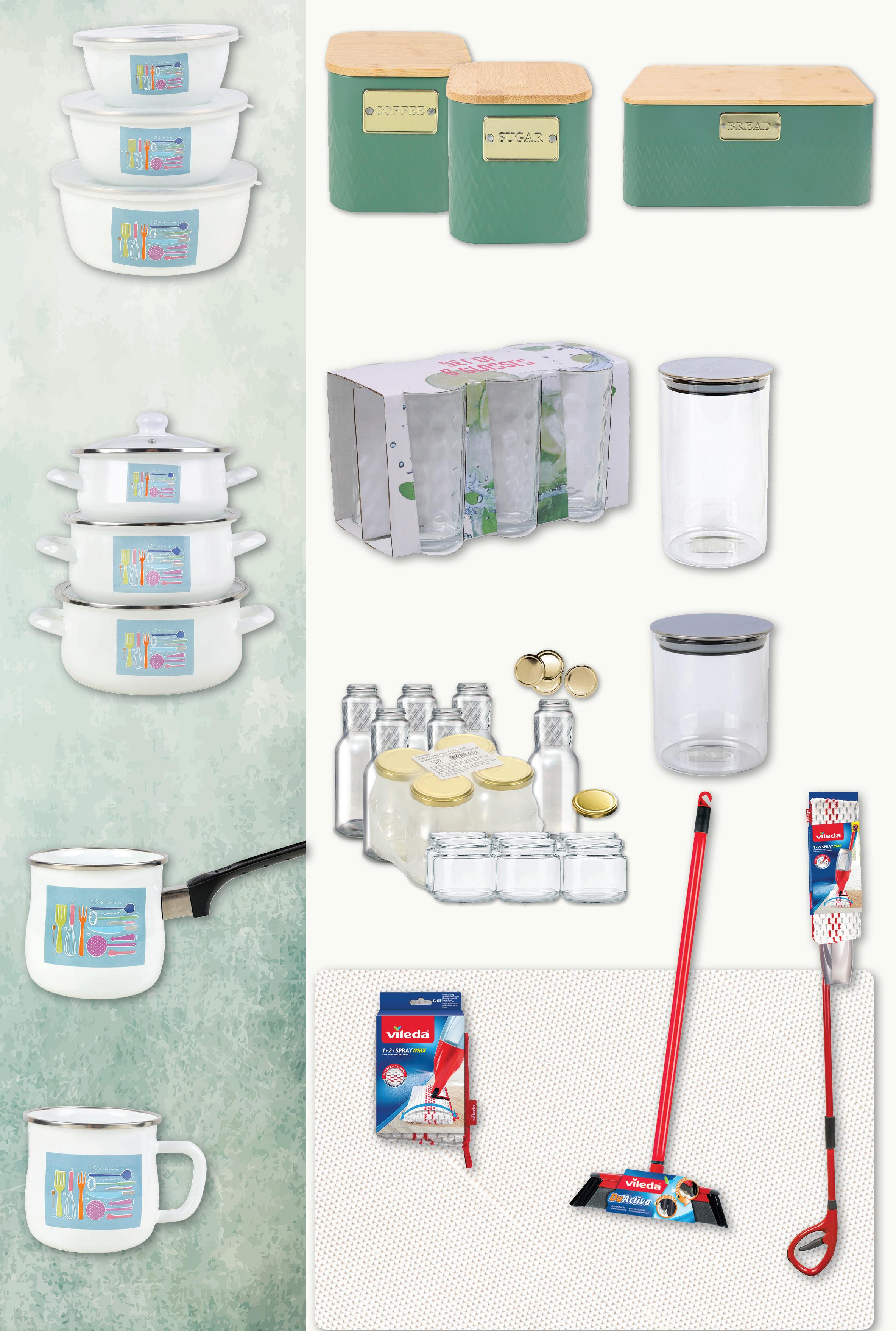 • sadrži duboke tave sa staklenim poklopcem dimenzija 16 cm s 1 ručkom i staklenim poklopcem, 20 cm s 2 ručke i staklenim poklopcem, 24 cm s 2 ručke i staklenim poklopcem, te tave dimenzija 24 cm i 28 cm sa staklenim poklopcima
