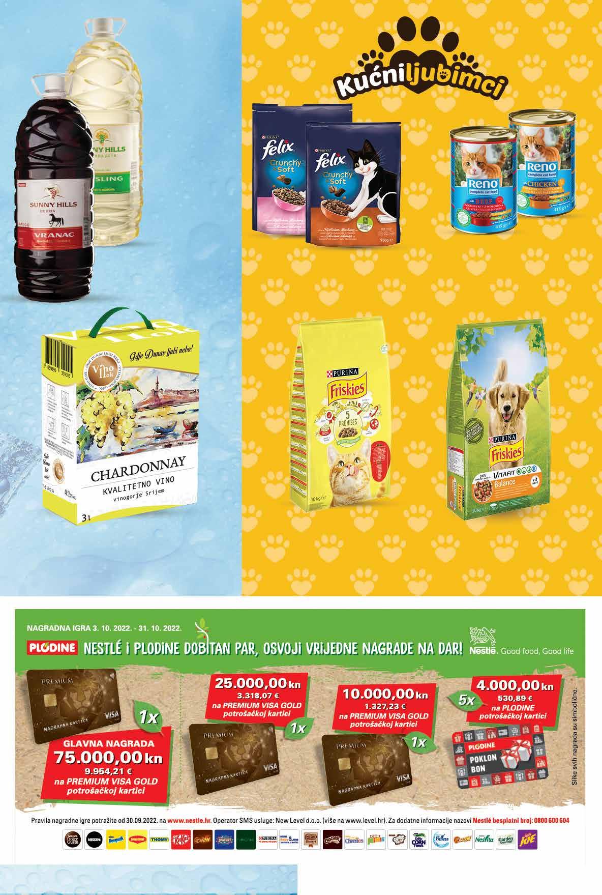 k40-str25 | 16 SUNNY HILLS Riesling ili Vranac bijelo ili crno vino 3 l 1 l = 6,66 kn 1 l = 0,88 € RENO Hrana za mačke razne vrste 415 g 1 kg = 12,02 kn 1 kg = 1,59 € FELIX Suha hrana za mačke razne vrste 950 g 1 kg = 25,25 kn 1 kg = 3,35 € FRISKIES Suha hrana za pse 10 kg 1 kg = 15,00 kn 1 kg = 1,99 € 00,00 499 kn 0,66 € 00,00 3499 kn 4,64 € VINO ILOK Chardonnay bijelo kvalitetno vino 3 l 1 l = 11,66 kn 1 l = 1,55 € Gastro preporuka: Uz teletinu, roštilj, morske plodove i dimljene sireve 00,00 1999 kn 2,65 € Gastro preporuka: Uz mesne plate FRISKIES Hrana za mačke govedina ili piletina 10 kg 1 kg = 20,00 kn 1 kg = 2,65 € SUPER PONUDA! 19999 kn 26,54 € -20% 249,99 33,18 SUPER PONUDA! 2399 kn 3,18 € -25% 31,99 4,25 SUPER PONUDA! 14999 kn 19,91 € -29% 213,99 28,40 3 l 10 kg 10 kg 3 l Fotografije proizvoda ne moraju u potpunosti odgovarati stvarnom izgledu proizvoda. Kupnja je moguća samo u količinama primjerenim za kućanstvo. Sve navedene cijene izražene su u kunama i eurima s PDV-om. Fiksni tečaj konverzije €/kn: 7,53450. Ne odgovaramo za tiskarske pogreške. 23