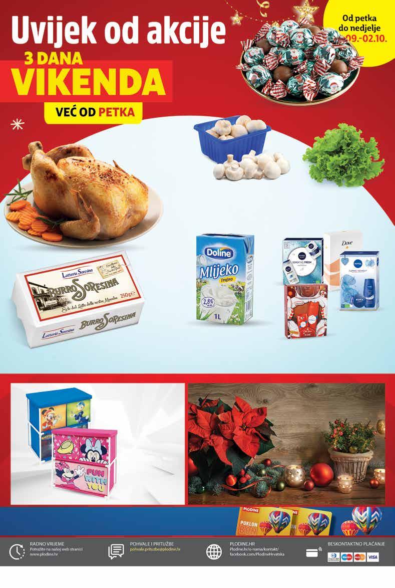 DOLINE Trajno mlijeko 2,8% m.m. 1 l LATTERIA SORESINA Maslac 250 g 1 kg = 63,96 kn 1 kg = 8,48 € Praline rinfuzo 1 kg Kupite POKLON BONOVE za vaše djelatnike Pečeno pile komad 14999 kn 19,91 € SUPER PONUDA! 1599 kn 2,12 € -15% 18,99 kn 2,52 € 2999 kn 3,98 € 729 kn 0,97 € 899 kn 1,19 € 299 kn 0,40 € 4499 kn 5,97 € POKLON PAKETI odabrane vrste -30% E-mail adresa odnosi se isključivo na upite vezane za poklon bonove. Sve informacije na e-mail: plodine-dar@plodine.hr MICKEY ILI MINNIE Spremnik • sa tri praktične ladice za odlaganje raznih stvari i igračaka • lagan za prenošenje i sastavljanje A B C BOŽIĆNE DEKORACIJE, RASVJETA, TEKSTIL, BOROVI I UMJETNO CVIJEĆE odabrane vrste do - 40% Salata Kristal komad Šampinjoni bijeli 500 g 1 kg = 17,98 kn 1 kg = 2,38 € VIKENDA 3 DANA VEĆ OD PETKA Uvijek od akcije Od petka do nedjelje 02.12.-04.12. komad komad 50×30×60 cm RINFUZO 500 g Ponuda vrijedi do isteka zaliha. Kupovina je moguća samo u količinama predviđenim za kućanstvo. Ponuda ne vrijedi u svim prodajnim centrima. Fotografije ne moraju u potpunosti odgovarati stvarnom izgledu prozivoda. Sve cijene su izražene u kunama i eurima s PDV-om. Fiksni tečaj konverzije €/kn: 7,53450. Ispričavamo se zbog mogućih tiskarskih pogrešaka. 50