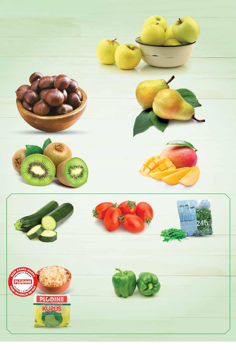 2999 kn 3,98 € 899 kn 1,19 € 999 kn 1,33 € 499 kn 0,66 € 499 kn 0,66 € 699 kn 0,93 € 699 kn 0,93 € 399 kn 0,53 € 799 kn 1,06 € Jabuka zelena 1 kg Kivi 1 kg Kesten 1 kg Kruška 1 kg Mango komad Tikvica 1 kg Cherry rajčica šljivar 250 g 1 kg = 19,96 kn 1 kg = 2,64 € Rukola 100 g 1 kg = 39,90 kn 1 kg = 5,30 € Kiseli kupus ribani 500 g 1 kg = 9,98 kn 1 kg = 1,32 € 899 kn 1,19 € • Svježe voće i povrće svaki dan! • Provjereno porijeklo • Kontrolirana kvaliteta Paprika zelena 1 kg TRŽNICA 500 g komad Fotografije proizvoda ne moraju u potpunosti odgovarati stvarnom izgledu proizvoda. Kupnja je moguća samo u količinama primjerenim za kućanstvo. Sve navedene cijene izražene su u kunama i eurima s PDV-om. Fiksni tečaj konverzije €/kn: 7,53450. Ne odgovaramo za tiskarske pogreške. 12