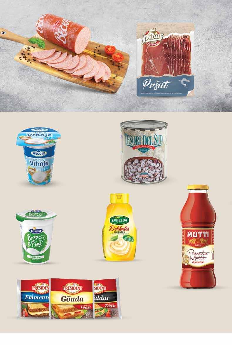 PODRAVKA Bečka kobasica polutrajni proizvod 1 kg MEGGLE Kiselo vrhnje 12% m.m. 180 g 1 kg = 26,61 kn 1 kg = 3,56 € DUKAT Mileram 22% m.m. 400 g 1 kg = 34,98 kn 1 kg = 4,65 € MUTTI Pasirana rajčica 400 ml 1 l = 22,48 kn 1 l = 2,98 € SUPER PONUDA! 5999 kn 7,96 € PIVAC Pršut narezak 200 g 1 kg = 149,95 kn 1 kg = 19,90 € 00,99 2999 kn 3,98 € 00,99 1399 kn 1,86 € SUPER PONUDA! 899 kn 1,19 € -18% 10,99 kn 1,46 € 00,99 999 kn 1,33 € SUPER PONUDA! 479 kn 0,64 € -12% 5,49 kn 0,73 € PRESIDENT Sir Toast razne vrste 150 g 1 kg = 66,60 kn 1 kg = 8,87 € 00,99 999 kn 1,33 € ZVIJEZDA Majoneza delikates 400 g 1 kg = 57,48 kn 1 kg = 7,63 € SUPER PONUDA! 2299 kn 3,05 € -14% 26,99 kn 3,58 € TESORI DEL SUD Grah smeđi *ocijeđena masa 480 g 800 g 1 kg = 20,81 kn 1 kg = 2,77€ Fotografije proizvoda ne moraju u potpunosti odgovarati stvarnom izgledu proizvoda. Kupnja je moguća samo u količinama primjerenim za kućanstvo. Sve navedene cijene izražene su u kunama i eurima s PDV-om. Fiksni tečaj konverzije €/kn: 7,53450. Ne odgovaramo za tiskarske pogreške. 30