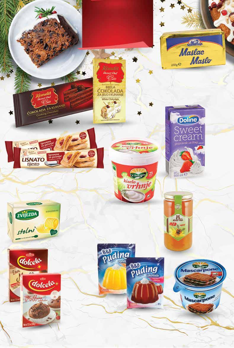 1399 kn 1,86 € PLODINE Svježe lisnato tijesto 275 g 1 kg = 27,24 kn 1 kg = 3,60 € B&B Puding vanilija ili čokolada 120 - 123 g 1 kg = 32,44 - 33,25 kn 1 kg = 4,31 - 4,42 € KANDIT Dessert chef čokolada za kuhanje bijela ili tamna 200 - 300 g 1 kg = 46,63 - 69,95 kn 1 kg = 6,20 - 9,30 € DOLCELA Mješavina za kolače i muffine razne vrste 350 g 1 kg = 48,54 kn 1 kg = 6,43 € ZVIJEZDA Stolni margarin 80% biljne masti, bez kolesterola, obogaćen vitaminima A, D i E 250 g 1 kg = 23,96 kn 1 kg = 3,20 € `Z BREGOV Sir Mascarpone 500 g 1 kg = 69,98 kn 1 kg = 9,28 € `Z BREGOV Kiselo vrhnje 25% m.m. 900 g 1 kg = 27,77 kn 1 kg = 3,69 € 1699 kn 2,25 € MEGA MILK Maslac 82% m.m. 250 g 1 kg = 63,96 kn 1 kg = 8,48 € 1599 kn 2,12 € 749 kn 0,99 € 599 kn 0,80 € DOLINE Vrhnje za šlag 500 ml 1 l = 19,98 kn 1 l = 2,66 € 999 kn 1,33 € 3499 kn 4,64 € 399 kn 0,53 € MEDO FLOR Med cvjetni 900 g 1 kg = 33,32 kn 1 kg = 4,42 € SUPER PONUDA! 2999 kn 3,98 € -48% 57, 99 kn 7,70 € 2499 kn 3,32 € Najbolji sastojci za blagdanske slastice Fotografije proizvoda ne moraju u potpunosti odgovarati stvarnom izgledu proizvoda. Kupnja je moguća samo u količinama primjerenim za kućanstvo. Sve navedene cijene izražene su u kunama i eurima s PDV-om. Fiksni tečaj konverzije €/kn: 7,53450. Ne odgovaramo za tiskarske pogreške. 16