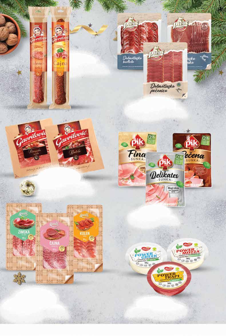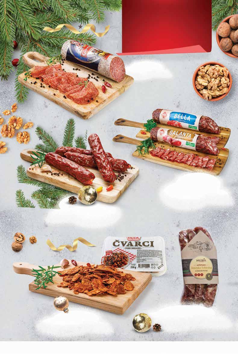 SUPER PONUDA! 2999 kn 3,98 € -33% 44,89 kn 5,96 € VAJDA Čvarci 250 g 1 kg = 119,96 kn 1 kg = 15,92 € HISTRIS Istarska kobasica polutrajni proizvod 375 g 1 kg = 106,64 kn 1 kg = 14,16 € 3999 kn 5,31 € RAVLIĆ Osječka ili domaća kobasica trajni proizvod 1 kg 7499 kn 9,95 € PIK VRBOVEC Galanta ili Bella kobasica trajni proizvod 1 kg 9999 kn 13,27 € GAVRILOVIĆ Zimska salama trajni proizvod 1 kg 13999 kn 18,58 € Najbolje delicije za vaš najljepši POTRAŽI NA ODJELU DELIKATESA Fotografije proizvoda ne moraju u potpunosti odgovarati stvarnom izgledu proizvoda. Kupnja je moguća samo u količinama primjerenim za kućanstvo. Sve navedene cijene izražene su u kunama i eurima s PDV-om. Fiksni tečaj konverzije €/kn: 7,53450. Ne odgovaramo za tiskarske pogreške. 6