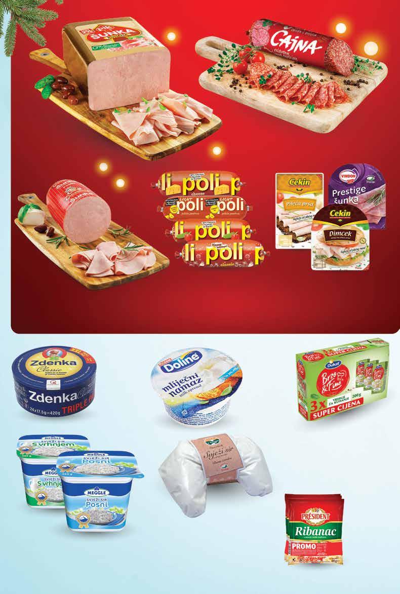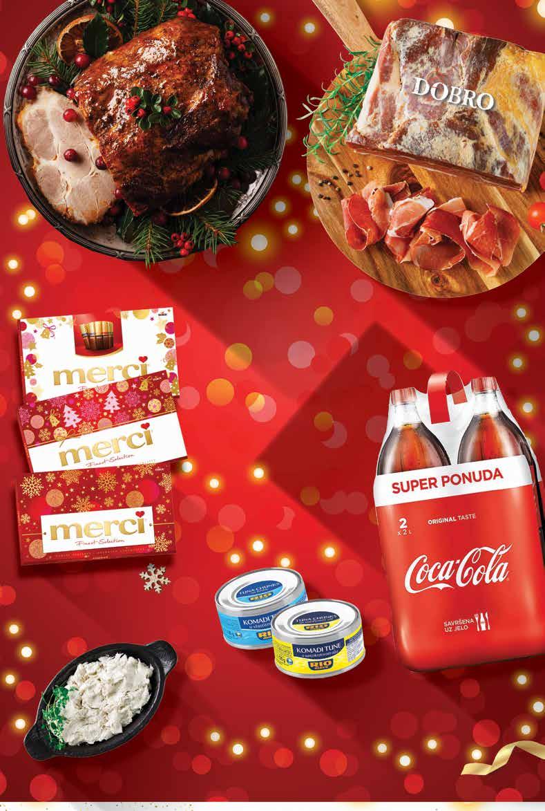 Bakalar na bijelo 1 kg COCA-COLA Gazirani napitak 2x 2 l 1 l = 5,87 kn 1 l = 0,78 € MERCI Bombonijera Finest selection Gross 400 g 1 kg = 149,98 kn 1 kg = 19,90 € RIO MARE Komadi tune razne vrste *ocijeđene mase od 112 do 160 g 160 g 1 kg = 116,58 - 124,91 kn 1 kg = 15,50 - 16,61 € Janjetina, odojak i prasetina za pečenje svježe, na pultu 1 kg SUPER PONUDA! 11999 kn 15,93 € SUPER PONUDA! 2349 kn 3,12 € SUPER PONUDA! 5999 kn 7,96 € SUPER PONUDA! 12499 kn 16,59 € SUPER PONUDA! 1399 kn 1,86 € -44% 24,99 kn 3,32 € POTRAŽI NA USLUŽNOM PULTU od SRIJEDE 21.12. do 27.12. Ponuda vrijedi od srijede 21.12. do utorka 27.12.2022. ili do isteka zaliha. Sve cijene su izražene u kunama i eurima s PDV-om. Kupovina je moguća samo u količinama predviđenim za kućanstvo. Fotografije ne moraju u potpunosti odgovarati stvarnom izgledu proizvoda. Ispričavamo se zbog mogućih tiskarskih pogrešaka. Fiksni tečaj konverzije €/kn: 7,53450 Izdanje 51/2022