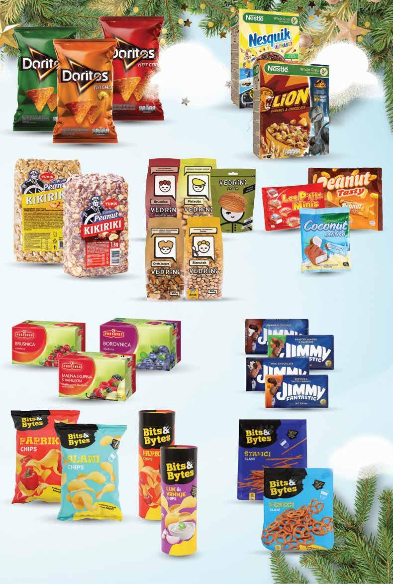 NESTLE Žitne pahuljice razne vrste 325 - 400 g 1 kg = 61,31 - 70,74 kn 1 kg = 8,13 - 9,38 € DORITOS Tortilja čips razne vrste 100 g 1 kg = 99,90 kn 1 kg = 13,30 € BITS&BYTES Čips tuba razne vrste 100 g 1 kg = 69,90 kn 1 kg = 9,30 € BITS&BYTES Čips slani ili paprika 200 g 1 kg = 34,95 kn 1 kg = 4,65 € JIMMY Čokolada razne vrste 180 g 1 kg = 66,61 kn 1 kg = 8,83 € YUMIS Kikiriki Pečeni ili prženi, u opni ili slani 1 kg 2599 kn 3,45 € 2299 kn 3,05 € 1199 kn 1,59 € 1199 kn 1,59 € SUPER PONUDA! 1399 kn 1,86 € VEĆ OD BITS&BYTES Slani štapići ili pereci 200 - 220 g 1 kg = 22,68 - 24,95 kn 1 kg = 3,00 - 3,30 € SUPER PONUDA! 499 kn 0,66 € -23% 6,49 kn 0,86 € SUPER PONUDA! 699 kn 0,93 € -22% 8,99 kn 1,19 € SUPER PONUDA! 699 kn 0,93 € -22% 8,99 kn 1,19 € SUPER PONUDA! 999 kn 1,33 € -16% 11,99 kn 1,59€ VEDRINI odabrani proizvodi -20% PODRAVKA Voćni čaj razne vrste 40 - 50 g 1 kg = 239,80 - 299,75 kn 1 kg = 31,80 - 39,75 € 1 kg NATRA LABEL Čokoladice razne vrste 250 - 450 g Fotografije proizvoda ne moraju u potpunosti odgovarati stvarnom izgledu proizvoda. Kupnja je moguća samo u količinama primjerenim za kućanstvo. Sve navedene cijene izražene su u kunama i eurima s PDV-om. Fiksni tečaj konverzije €/kn: 7,53450. Ne odgovaramo za tiskarske pogreške. 25