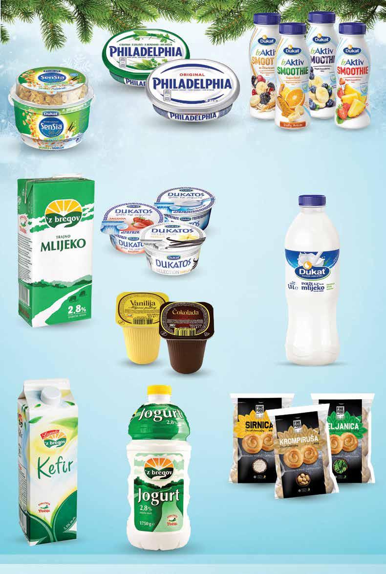 SUPER PONUDA! 2399 kn 3,18 € -20% 29,99 kn 3,98 € DUKAT Sensia Snack 190 g 1 kg = 52,58 kn 1 kg = 7,00 € VINDIJA Mliječni puding vanilija ili čokolada 125 g 1 kg = 27,92 kn 1 kg = 3,68 € `Z BREGOV Trajno mlijeko 2,8% m.m. 1 l DUKATOS Grčki tip jogurta razni okusi 10% ili 8% m.m. 150 g 1 kg = 39,93 kn 1 kg = 5,33 € `Z BREGOV Tekući jogurt 2,8% m.m. 1,75 l 1 l = 13,14 kn 1 l = 1,74 € DUKAT B.AKTIV Smoothie jogurt LGG razni okusi 1,5% m.m. 330 g 1 kg = 30,27 kn 1 kg = 4,03 € DUKAT Svježe mlijeko 3,2% m.m. 1,5 l 1 l = 8,66 kn 1 l = 1,15 € `Z BREGOV Kefir 3,5% m.m. 1 kg FINE FOOD Pita krumpiruša, sirnica ili zeljanica smrznuto 810 g 1 kg = 29,62 kn 1 kg = 3,93 € 999 kn 1,33 € 1499 kn 1,99 € 999 kn 1,33 € 738 kn 0,98 € 2299 kn 3,05 € 1299 kn 1,72€ 599 kn 0,80€ 349 kn 0,46 € PHILADELPHIA Sirni namaz razne vrste 175 g 1 kg = 85,66 kn 1 kg = 11,37 € 1499 kn 1,99 € smrznuto Fotografije proizvoda ne moraju u potpunosti odgovarati stvarnom izgledu proizvoda. Kupnja je moguća samo u količinama primjerenim za kućanstvo. Sve navedene cijene izražene su u kunama i eurima s PDV-om. Fiksni tečaj konverzije €/kn: 7,53450. Ne odgovaramo za tiskarske pogreške. 23