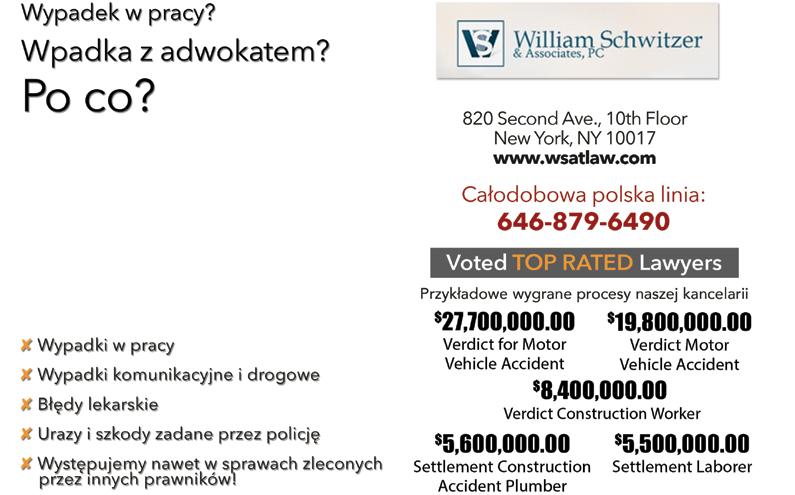 Jeżeli Państwo lub Państwa bliscy doznali obrażeń cielesnych w wyniku wypadku, zachęcam do kontaktu z naszą kancelarią. Aby umówić się na bezpłatną konsultację i porozmawiać bezpośrednio z mecenasem Wierzbickim w języku polskim mogą Państwo dzwonić na numer 646-351-8611 lub wysłać e-mail z zapytaniem na adres pwierzbicki@ blockotoole.com.