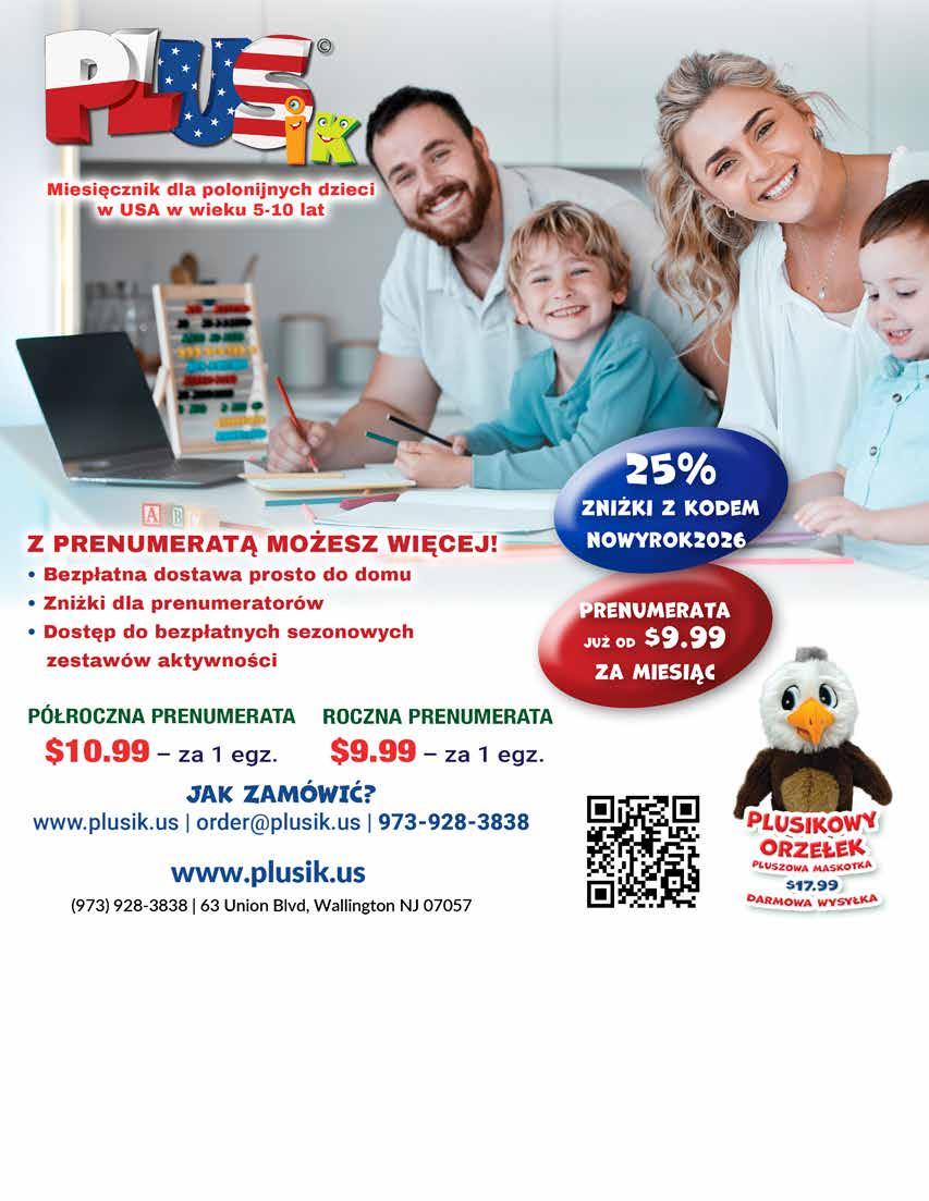 Rozwiązanie krzyżówki prześlij do nas e-mailem na adres ogloszenia-ny@tygodnikplus.com lub na nasz adres pocztowy 63 Union Blvd, Wallington NJ 07057 wraz z podaniem imienia, nazwiska i dokładnego adresu. Wszystkie prawidłowe rozwiązania przesłane do dnia 26.1.26r. wezmą udział w losowaniu nagrody. Dane laureata obecnej krzyżówki zamieścimy na naszej stronie w dniu 2.2.26r. Nadesłanie przez Czytelnika rozwiązania krzyżówki oznacza, iż wyraża on zgodę na opublikowanie imienia, nazwiska oraz miejsca zamieszkania na liście laureatów. Rozwiązania prosimy przysyłać tylko raz. Duplikaty będą kasowane.