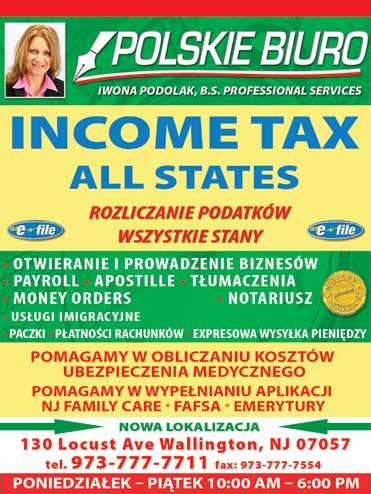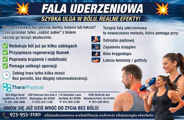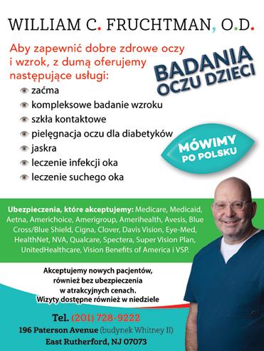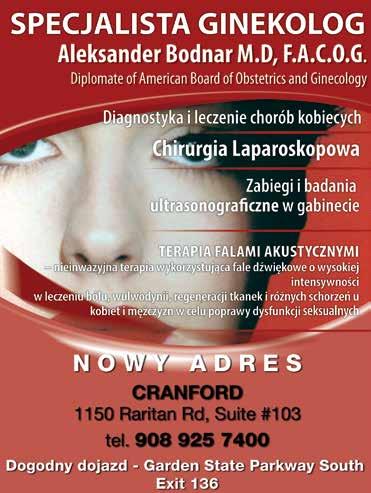 AMERICAN BOARD-CERTIFIED PHYSICIANS SPECIALIZING IN INTERNAL MEDICINE, ENDOCRINOLOGY, NEPHROLOGY & HYPERTENSION CHOROBY WEWNĘTRZNE • NADCIŚNIENIE • SZCZEPIENIA • LECZENIE POWYPADKOWE SCHORZENIA REUMATYCZNE • CUKRZYCA • LECZENIE NADWAGI • USG I BIOPSJE TARCZYCY • LECZENIE NIEWYDOLNOŚCI SEKSUALNEJ • CHOROBY NEREK I DRÓG MOCZOWYCH • DIALIZY • BADANIA IMIGRACYJNE • OPIEKA PO PRZESZCZEPACH NEREK I WĄTROBY 1033 CLIFTON AVE, SUITE 108 in CLIFTON Tel: 973-577-1995 (WSZYSCY LEKARZE) 515 N. WOOD AVE, SUITE 201 in LINDEN Tel: 908-934-0091 (DR. NOWAK i DR. SERRAO) 515 N. WOOD AVE, SUITE 302 in LINDEN Tel: 908-925-3300 (DRS. CZYZEWSCY i EDYTA KOLBUSZ)