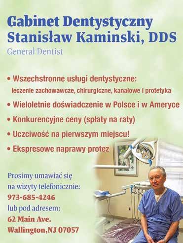 Dental office w Garfield NJ potrzebuje dental assistent. Wynagrodzenie zależne od doświadczenia. Wymagany język polski i angierlski (973) 772-0024.