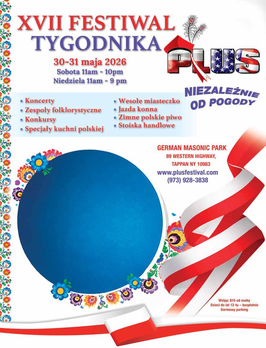 Rozwiązanie krzyżówki prześlij do nas e-mailem na adres ogloszenia@tygodnikplus.com lub na nasz adres pocztowy 63 Union Blvd, Wallington NJ 07057 wraz z podaniem imienia, nazwiska i dokładnego adresu. Wszystkie prawidłowe rozwiązania przesłane do dnia 30.04.26r. wezmą udział w losowaniu nagrody.