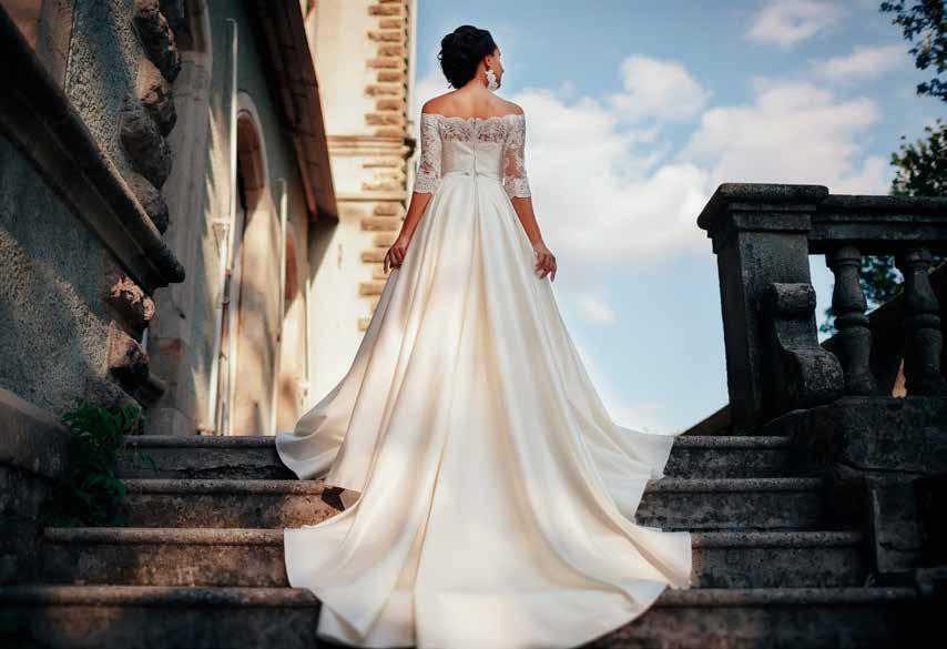 ramiączkach. Panny młode, które wolałyby zasłonić ramiona i plecy, wciąż mogą też zdecydować się na suknie z rękawkami.